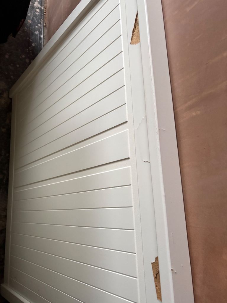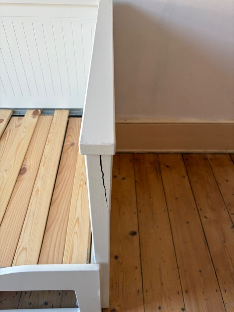 There is one slat missing and a crack in one side panel but this could easily be hidden if pushed up against a wall