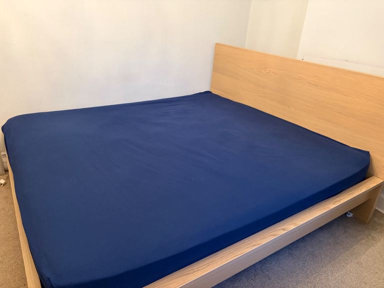 Wooden king size Bed Frame -Sturdy wooden double bed frame in good condition, featuring a simple, modern headboard and solid construction. Clean and well maintained, ideal for a bedroom, guest room. Neutral wood finish suits most décor styles.