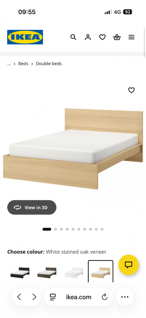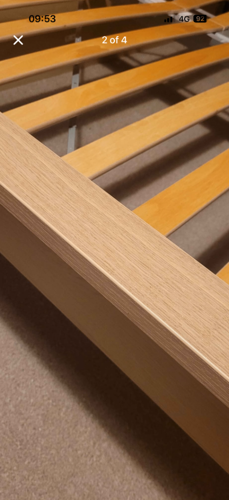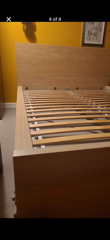 KEA malm double bed in white stained oak veneer in good condition, bed frame has already been dismantled might able to offer delivery