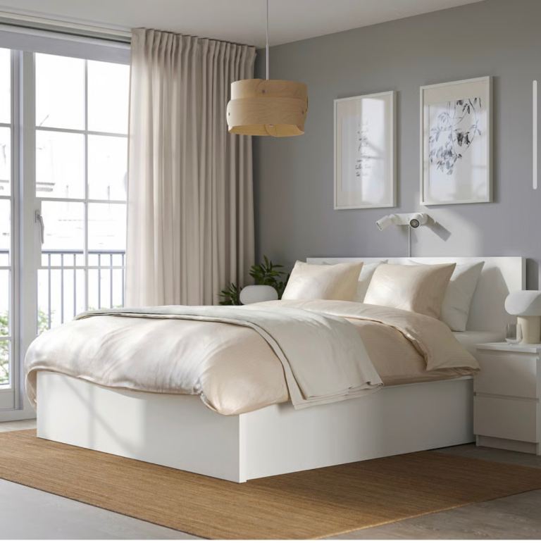 IKEA Malm double bed frame with practical under-bed storage.