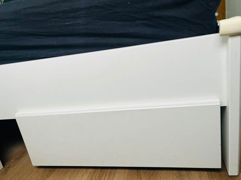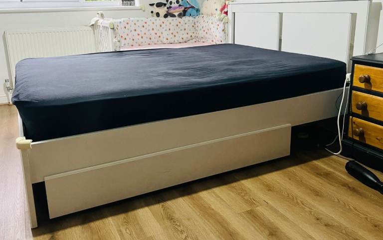 Posting for under a monthIKEA SONGESAND King Size Bed Frame with Storage – White (Includes Sprung Mattress)