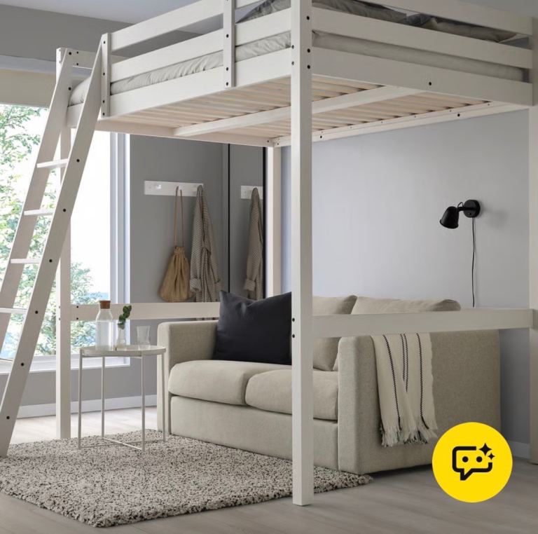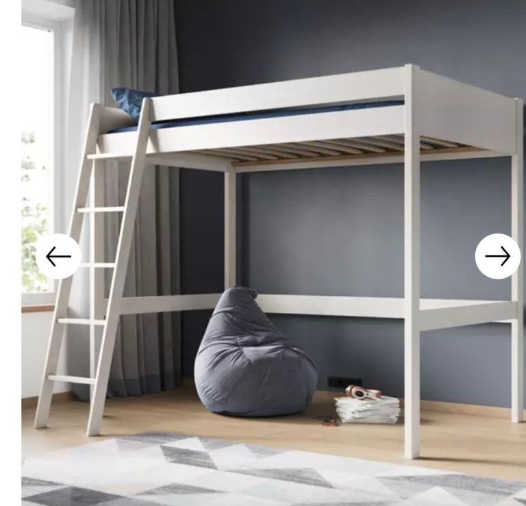 ILEA Stora double loft bed in white complete with mattress. Very good condition.