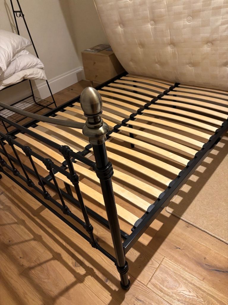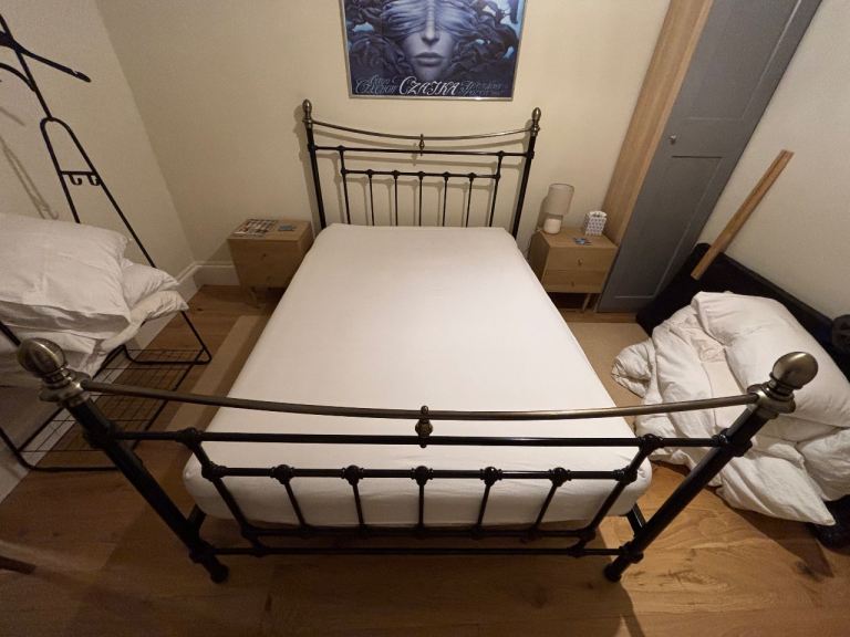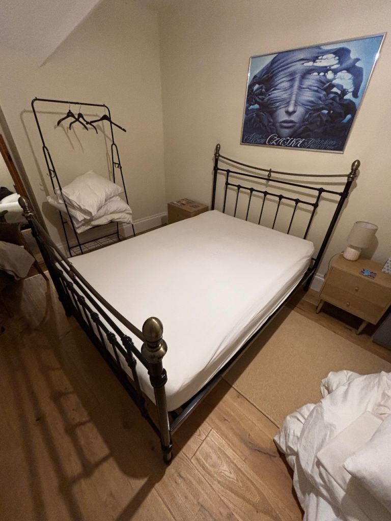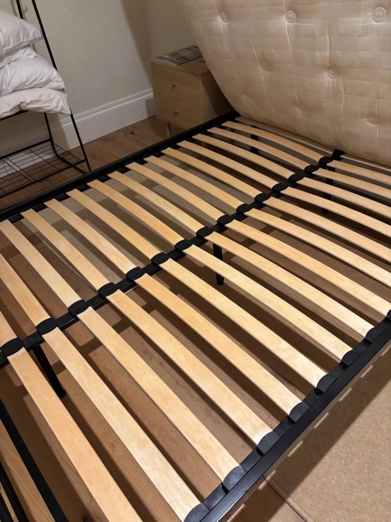 Excellent condition, 200cm length, approx 144cm width. Easy to assemble/disassemble. Mattress also available £20.