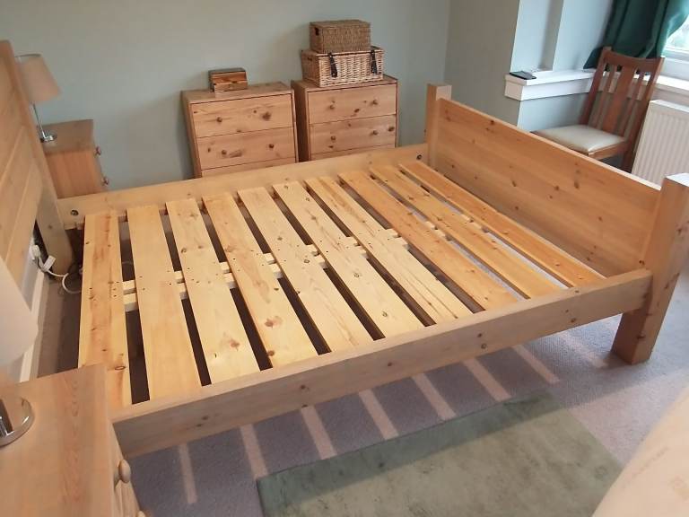 Hand made solid quality king size bed for sale as doesn't fit in new bedroom.