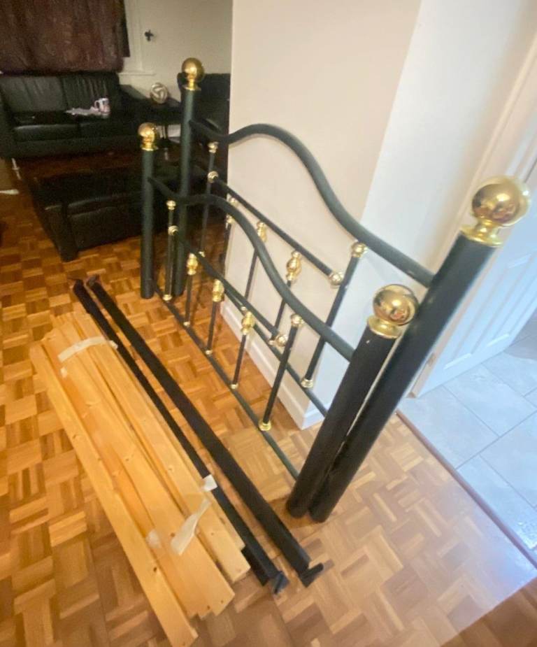 King size bed frame - Very solid metal frame (green and golden metal)