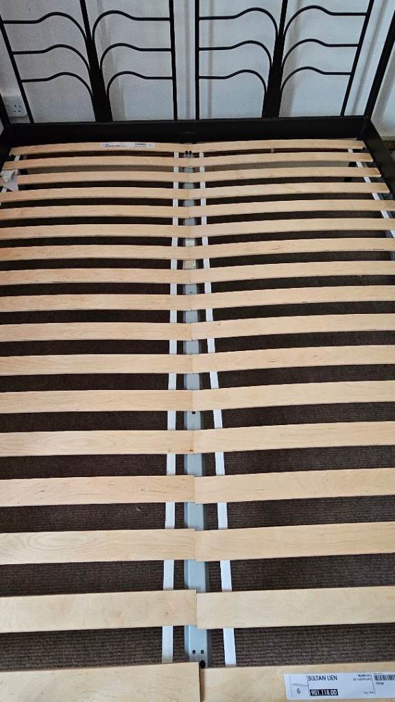 Ikea king sized bed frame with slats. All intact and in good condition. Collection only. NB will be dismantled for collection however headboard is quite large so not sure it will fit in a smaller car.