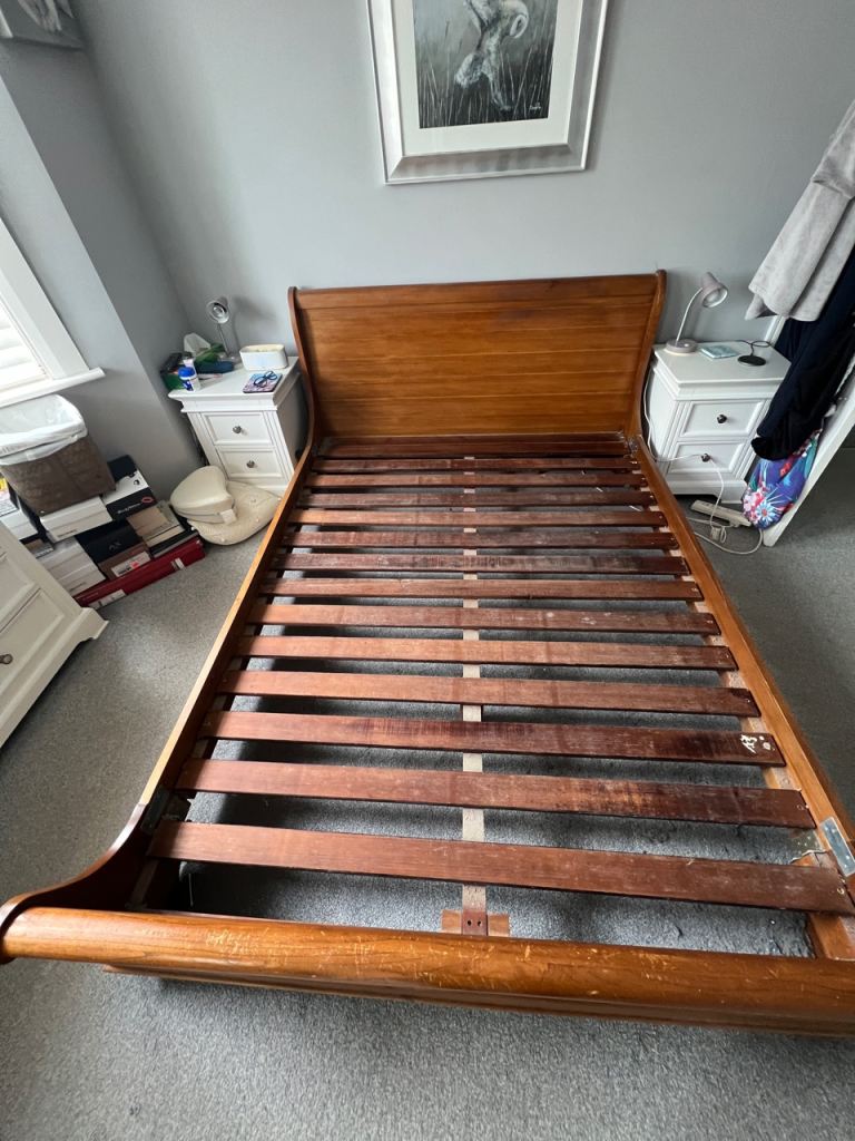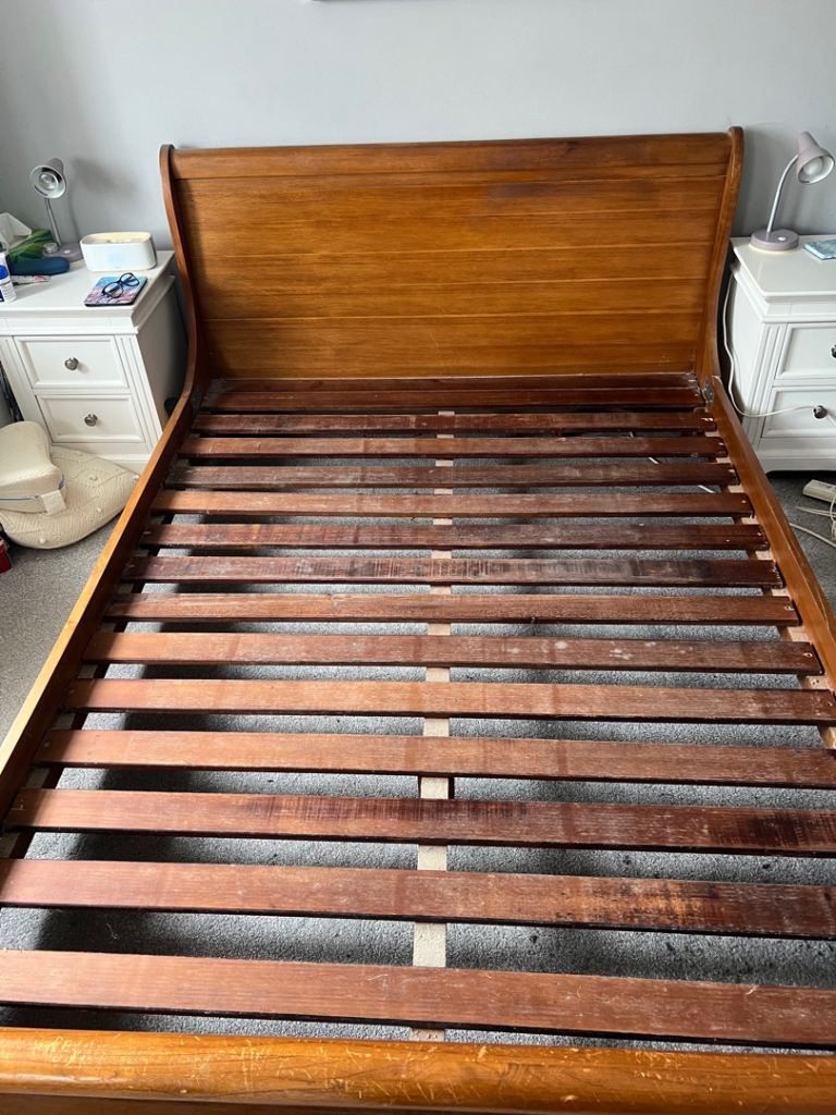 King Size Solid Oak Sleigh Bed, all OK condition.