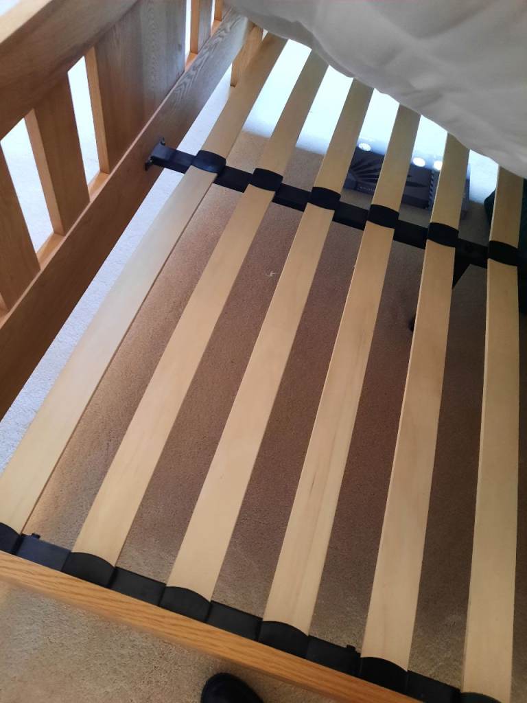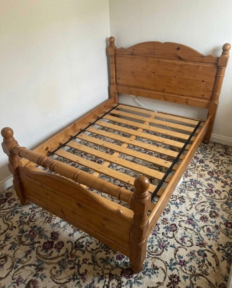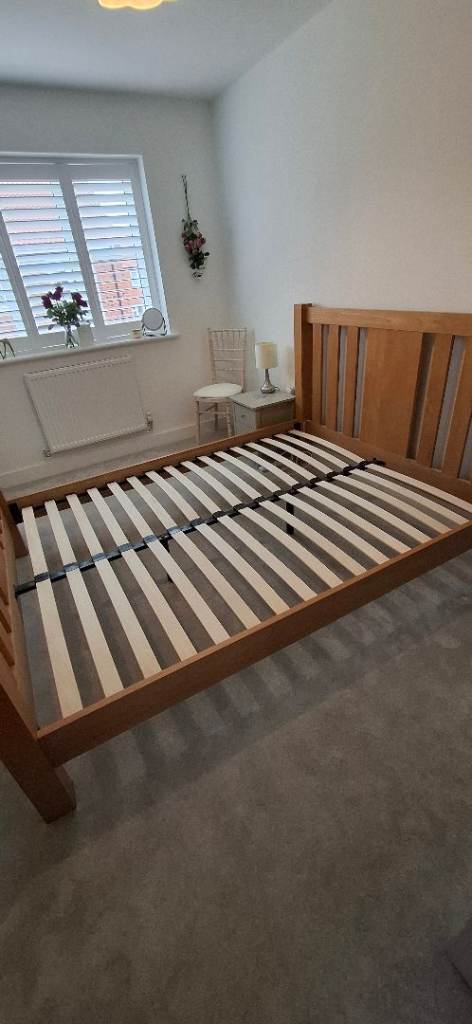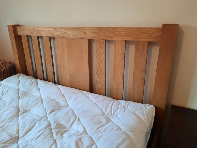very solid wooden king size bed frame. Good condition and has been well looked after. Does dismantle for moving.