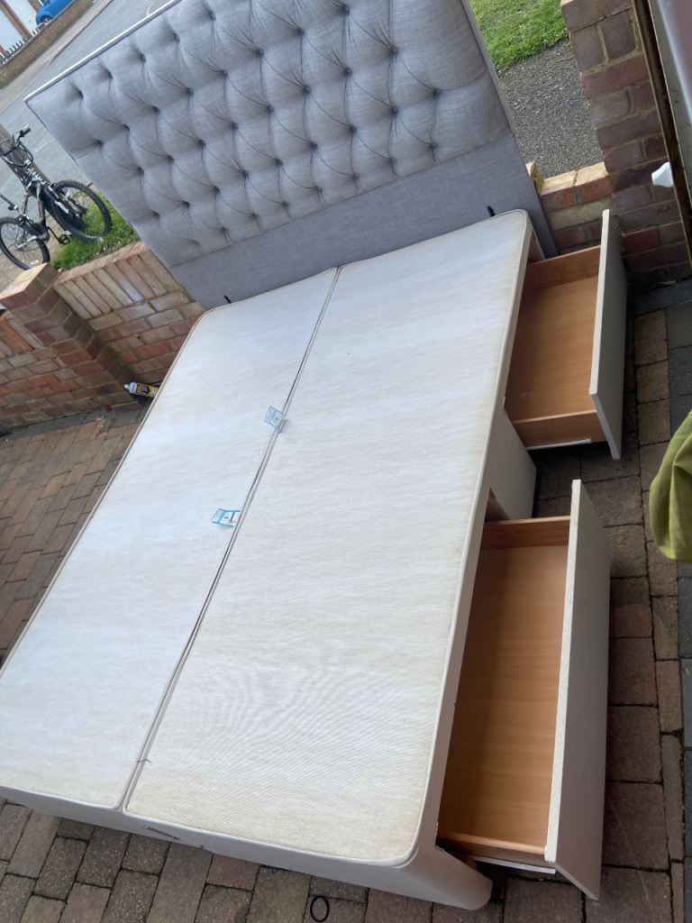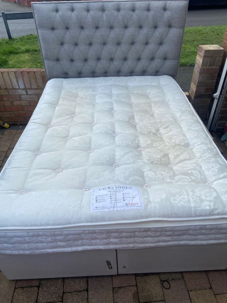 Posting for 1+ yearsLaura Ashley king size divan bed with 2 drawers/large headboard and mattress