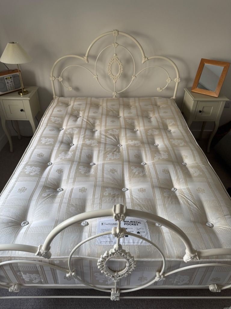 Laura Ashley ‘Somerset’ metal double bed frame in a beautiful ivory colour. Complete with sprung slatted base. Still available at Next but out of stock in this perfect size.