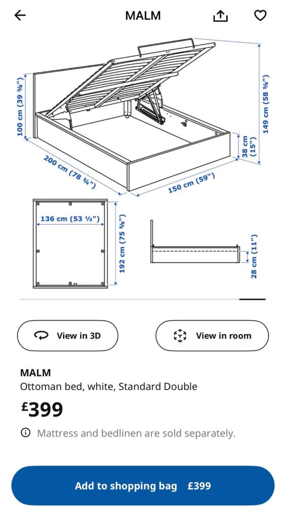 Posting for under a monthMalm Double IKEA Ottoman bed