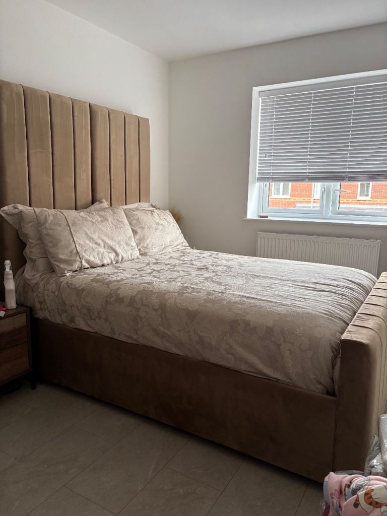 The bed is excellent condition few weeks old easy to assemble. Really thick quality bed well made. Also the bed is a gas lift storage bed with base board