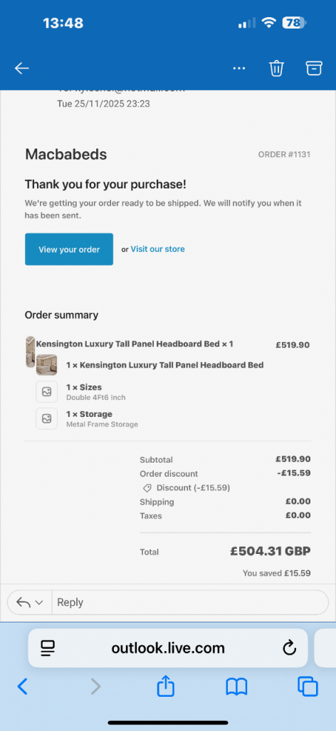 Bought couple of weeks ago but need a bigger bed due to me having a spinal injury.