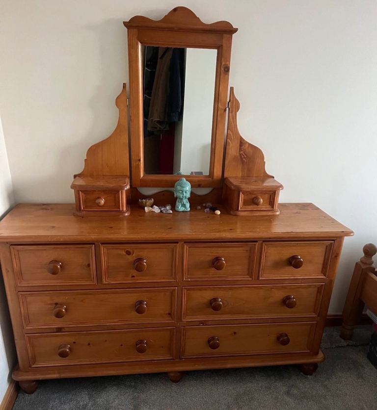 QUICK SALE: Solid pine bed, bedside cabinet and dressing table
