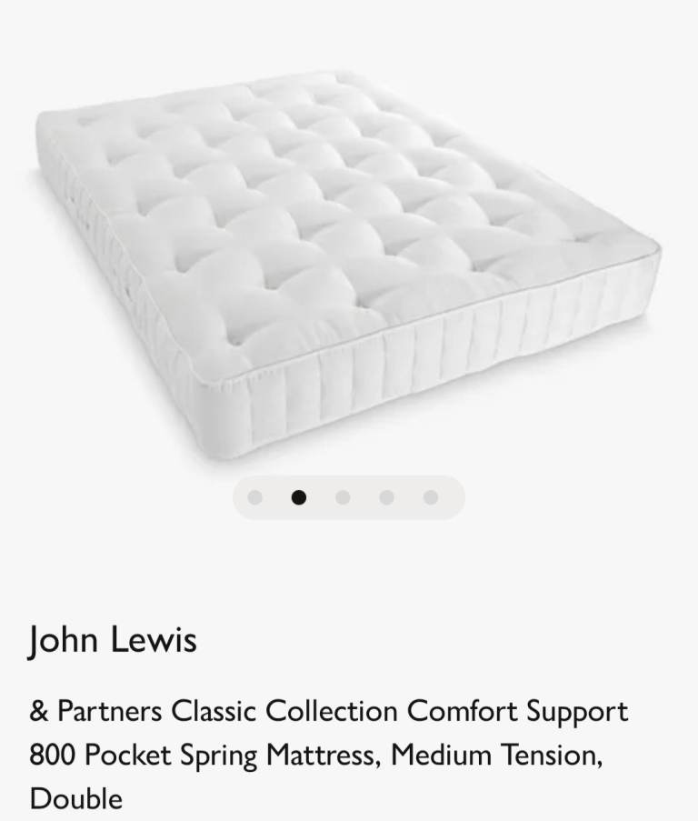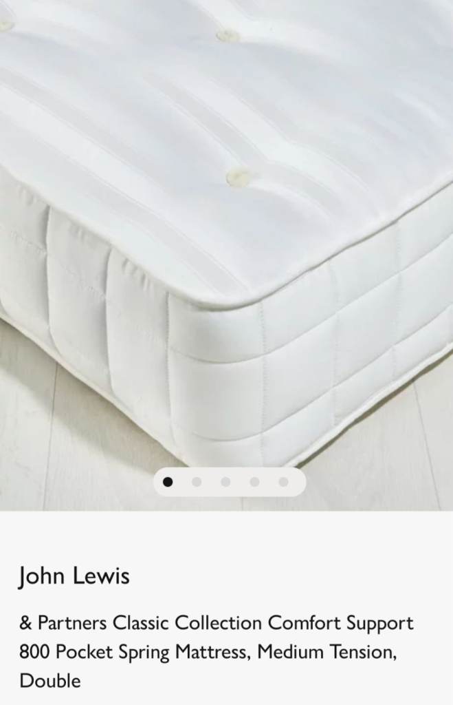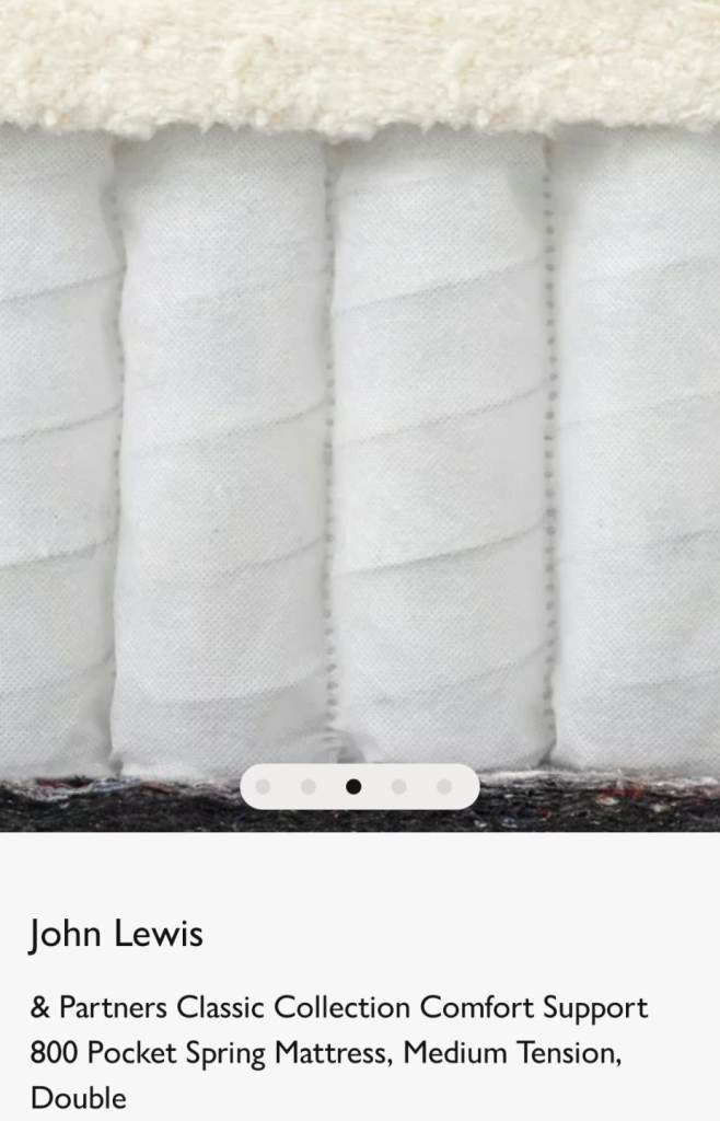 Includes 800 pocket sprung mattress from John Lewis and Partners (still within the 7 year guarantee.) Always had a mattress protector on.