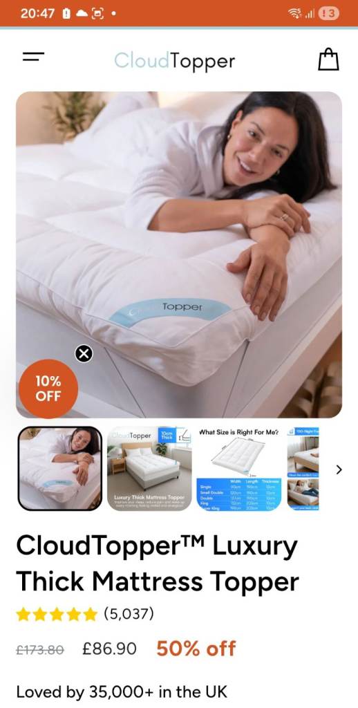 Option to purchase additional CloudTopper mattress topper for extra comfort. Simply add the CloudTopper™ to your mattress to improve your sleep, reduce pain and wake up every morning feeling rested and energised. £40
