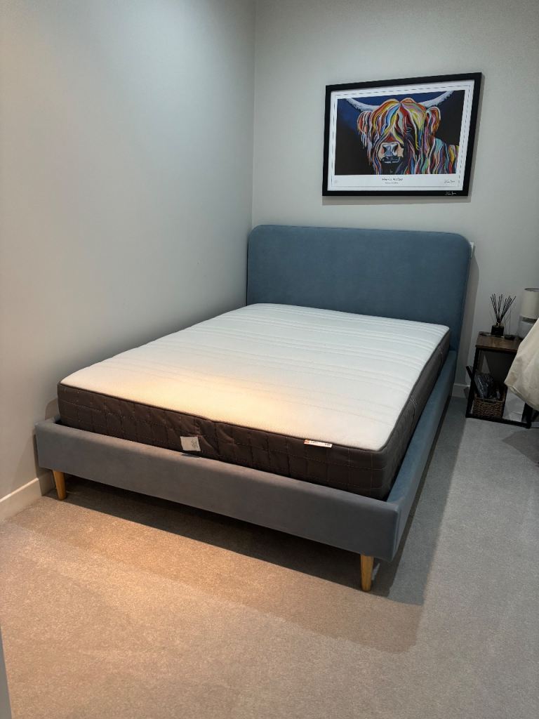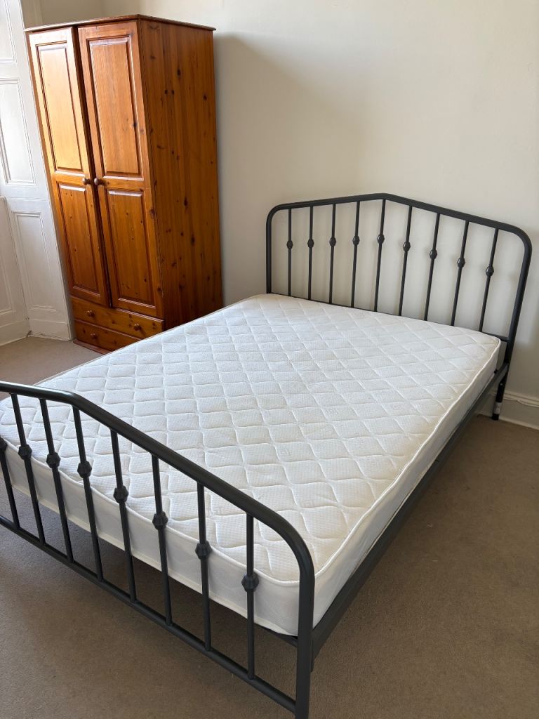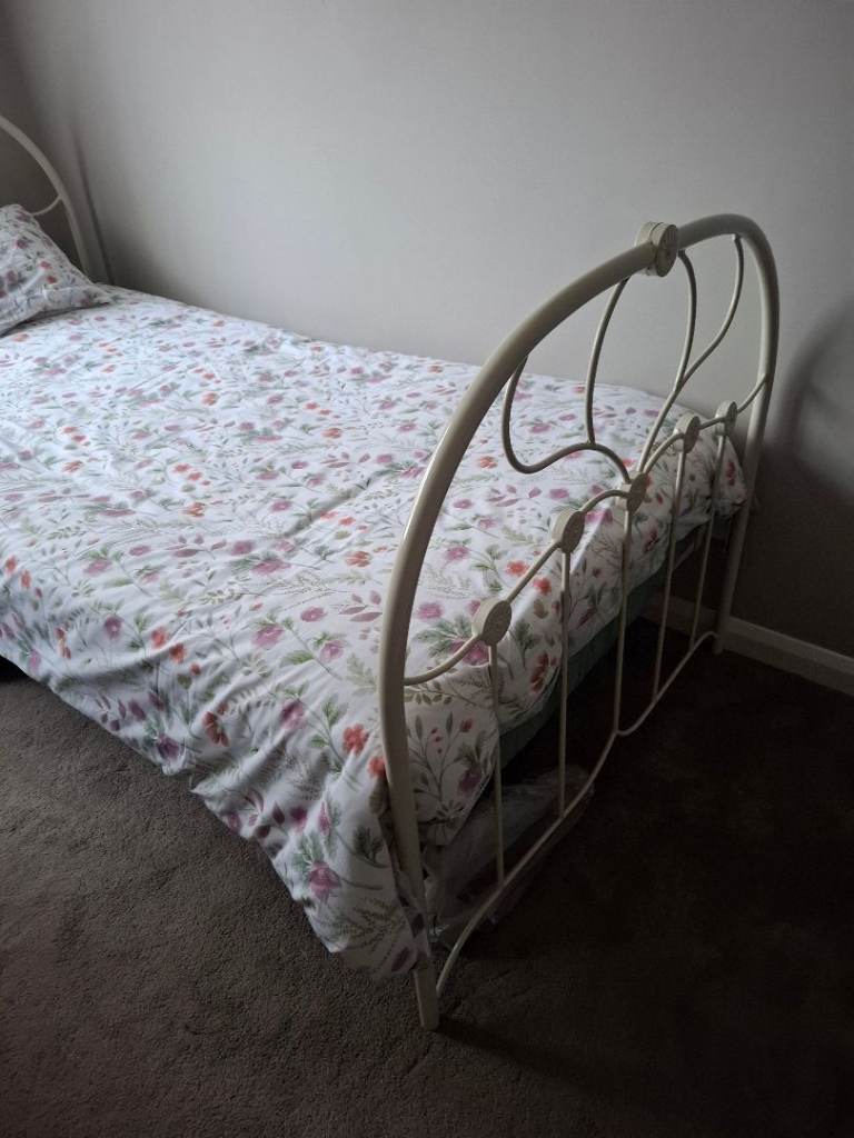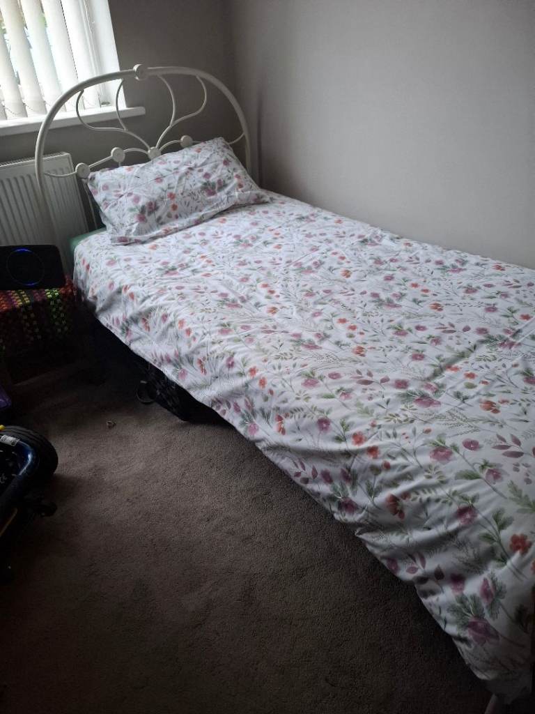 Single bed frame,with matress and duvet.