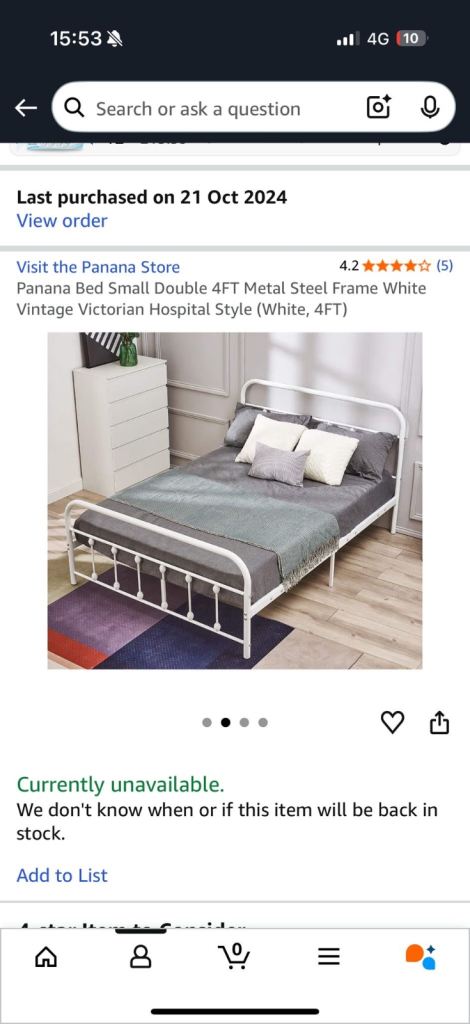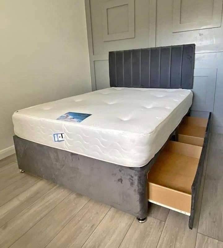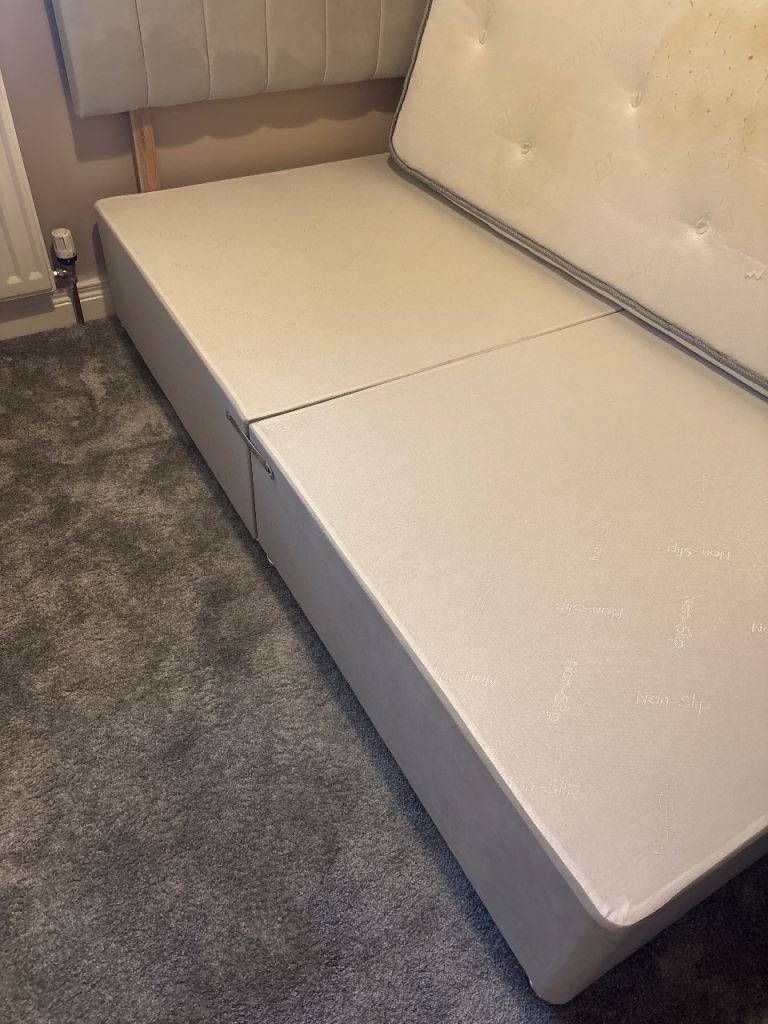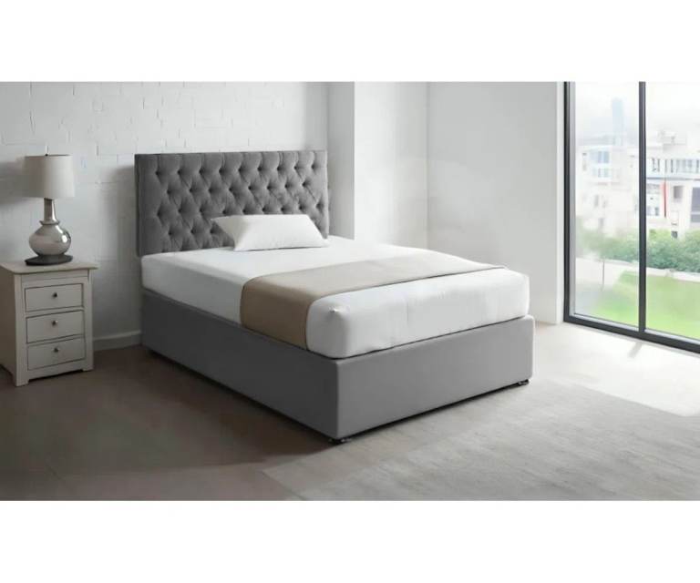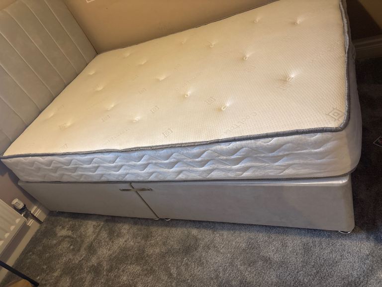 Small double bed (4 ft) and headboard in light grey, needs gone this evening