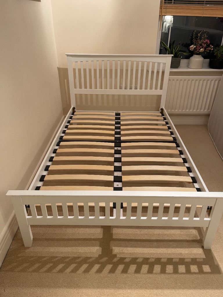Small Double Bed Frame – Solid Wood – White – Very Good Condition