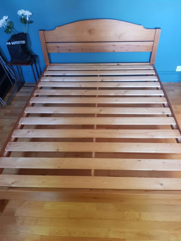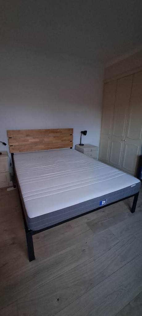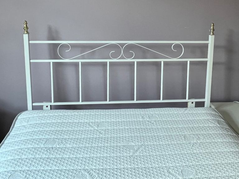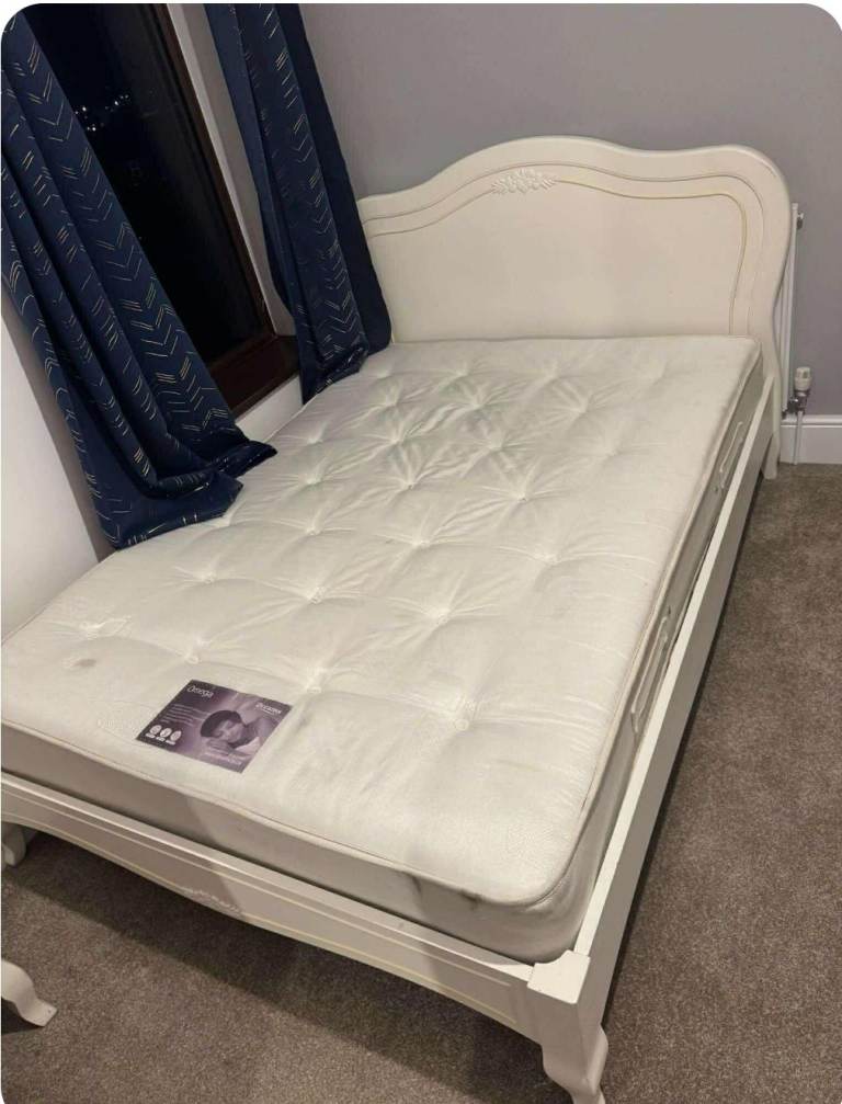 Small double bed with headboard and mattress