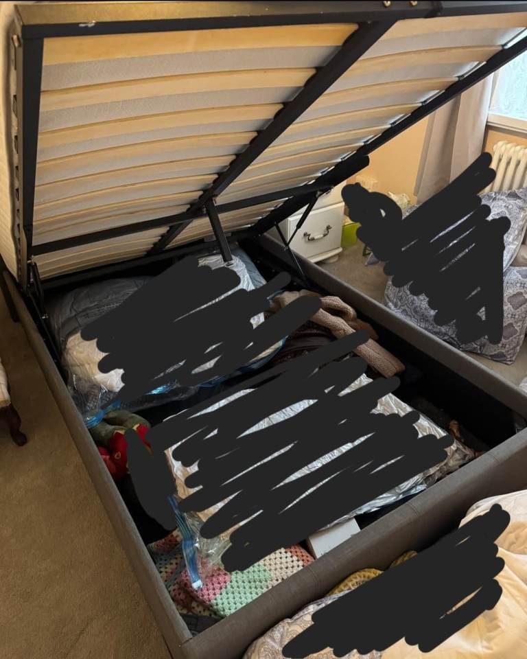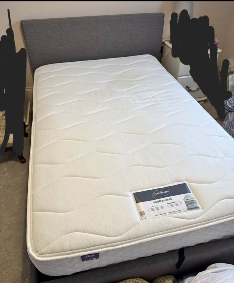 Small double grey ottoman bed with mattress