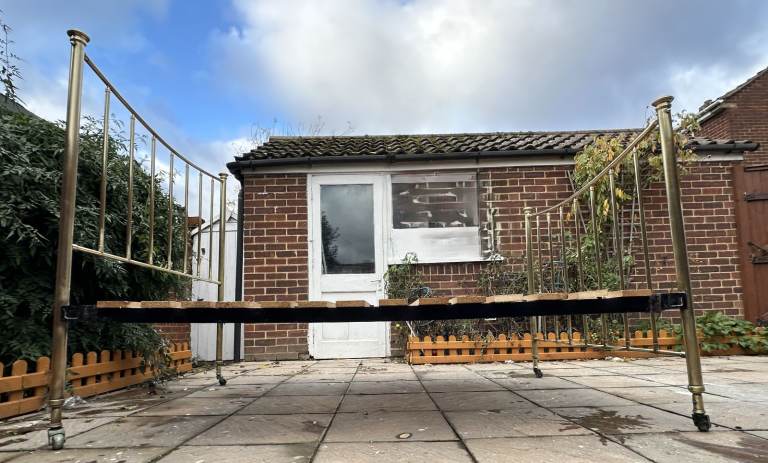 Solid Brass & Cast Iron Art Deco Style Double Bed Frame with St Thomas Hospital Castors