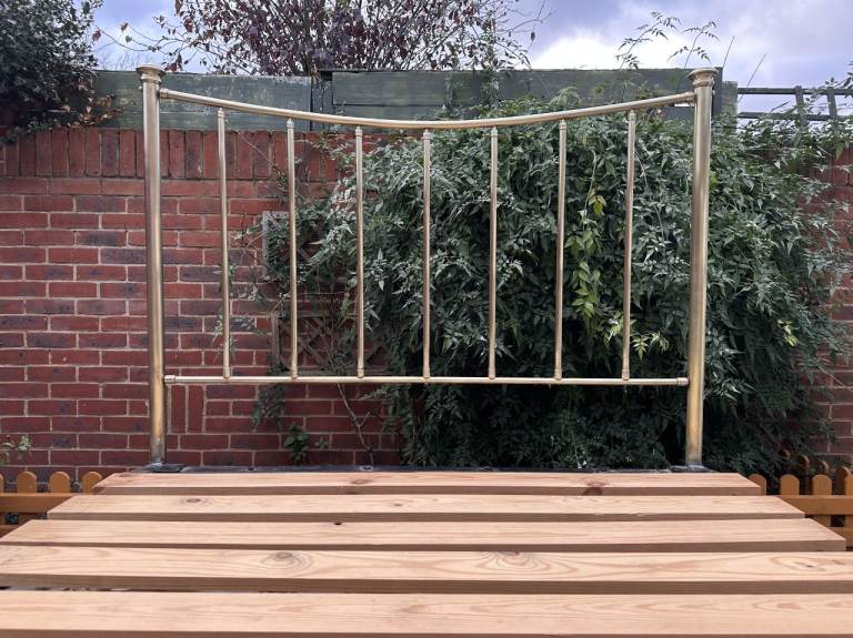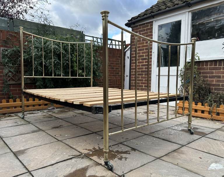 This Solid Brass & Cast Iron Double bed-frame is in a great used condition overall for its age. A considerable time was spent on inspected, making sure all components are in secure and place, hand polishing the brass using Brasso so looking much better, and cleaned, therefore there are some minor dents, tarnishes, scratches, marks. But it’s still such a lovely bed to own. Please see pictures and video**