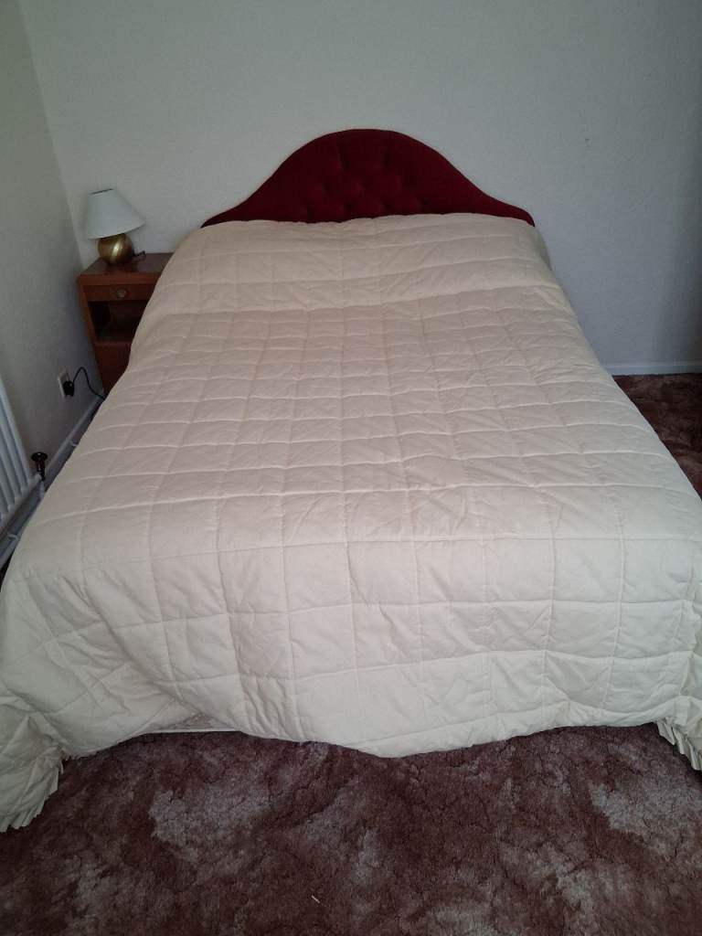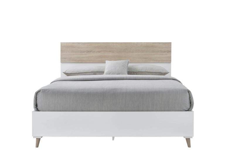 solid, heavy duty, white, Modern, wooden bed, double, with, mattress,