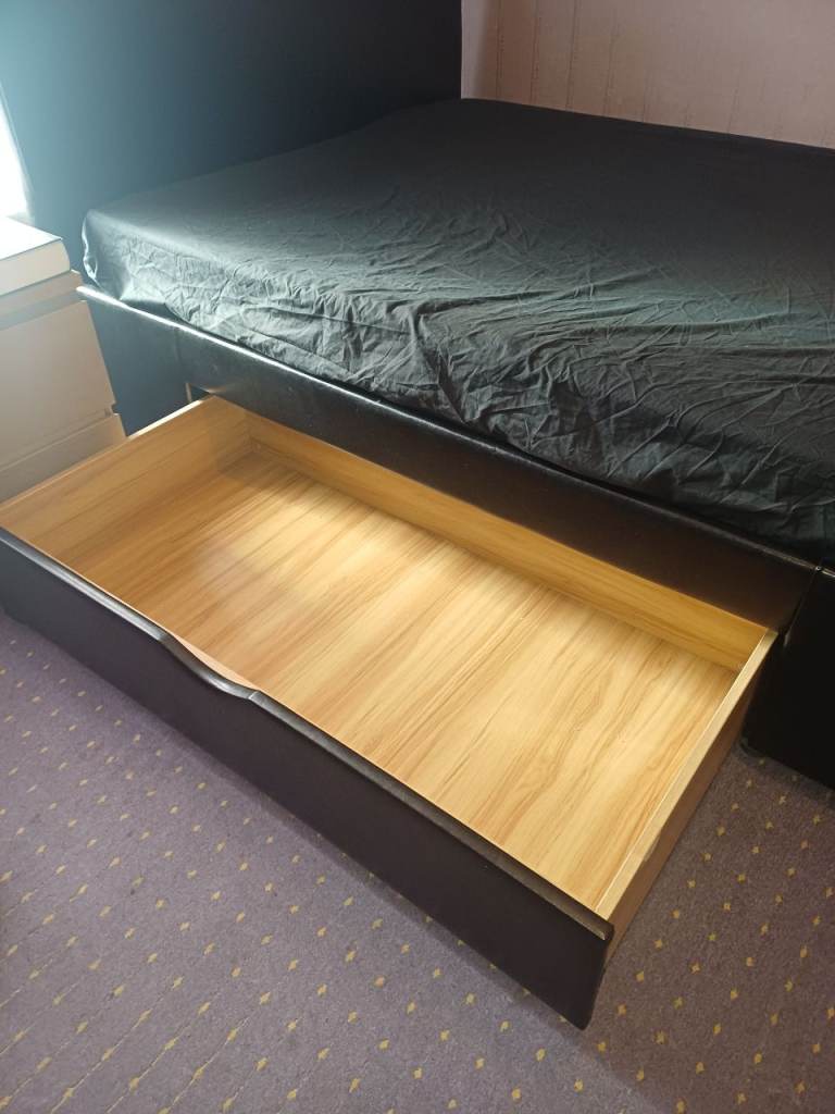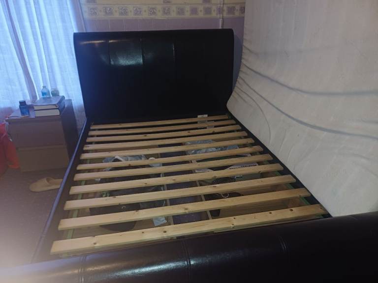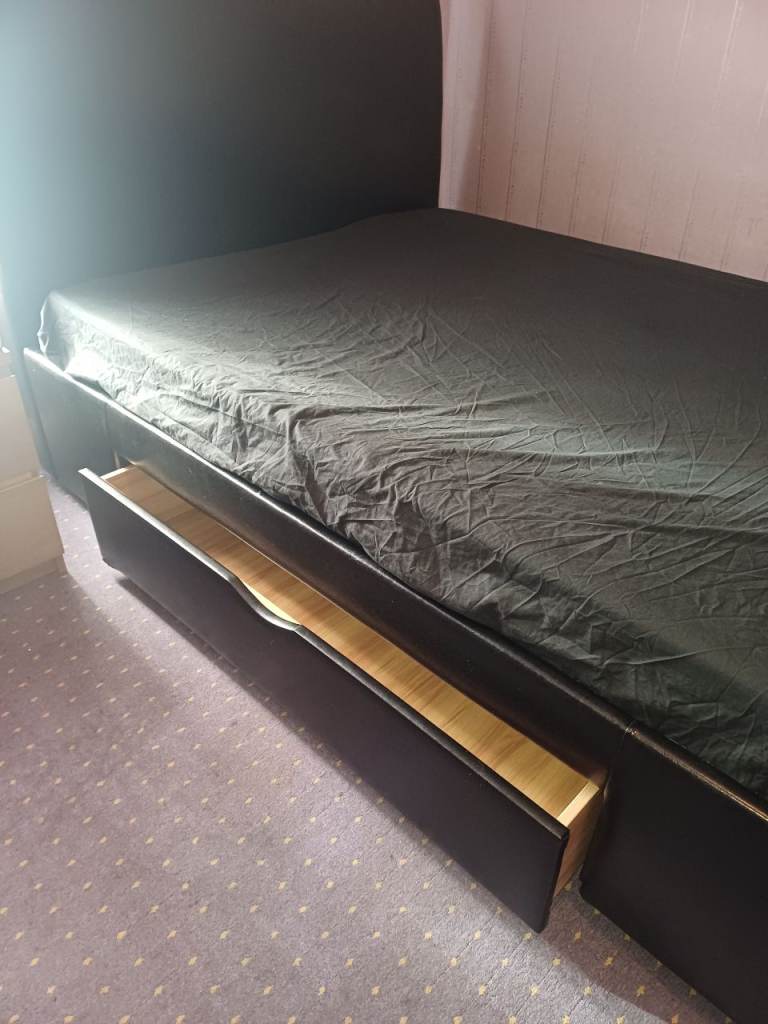 SOLID LEATHER BED. WITH LARGE SIZE DRAWERS! (£150)