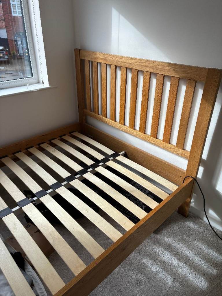 Solid Natural Oak Double Bed Frame Slatted With Headboard and Footboard