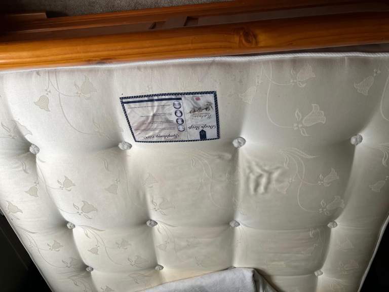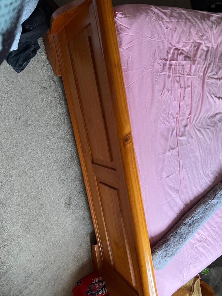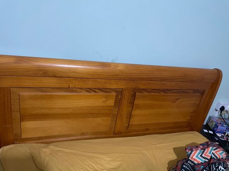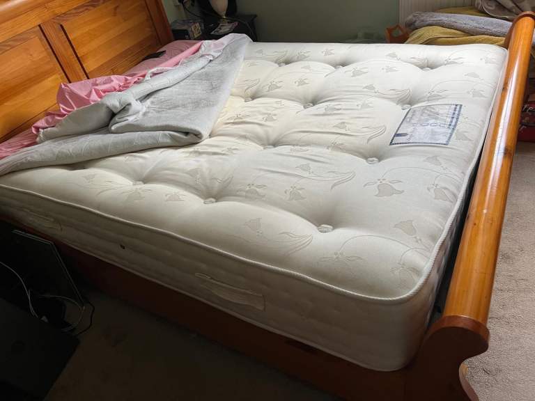 Solid oak double bed in great condition, extremely sturdy and beautiful piece of furniture. Also the mattress is great condition very heavy mattress, bed is very heavy, buyer to collect