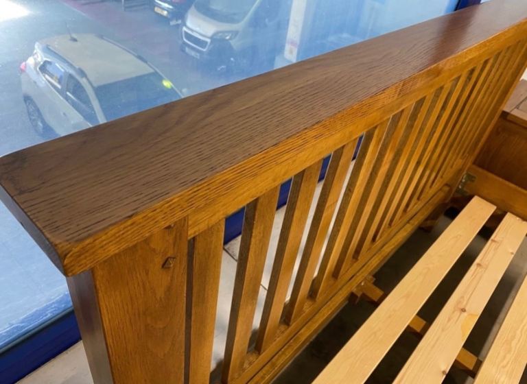 Solid Oak King Size Bed with Bedsides, Mirror and Tall Boy Chest of Drawers