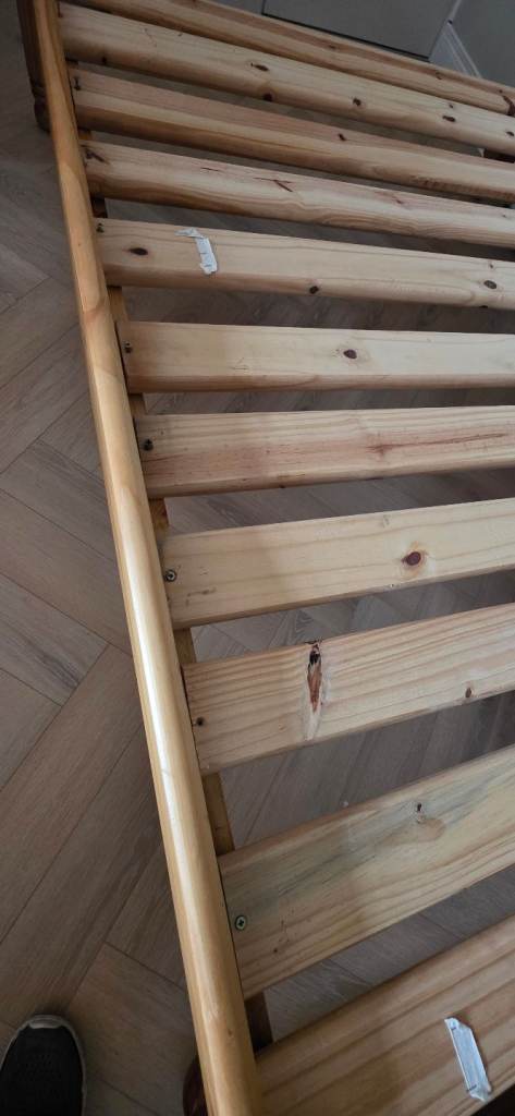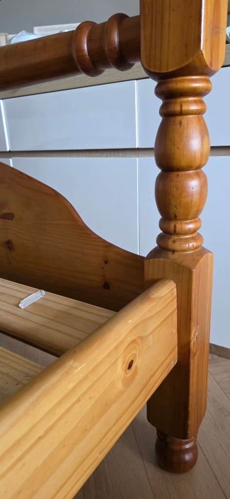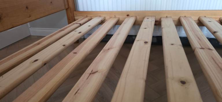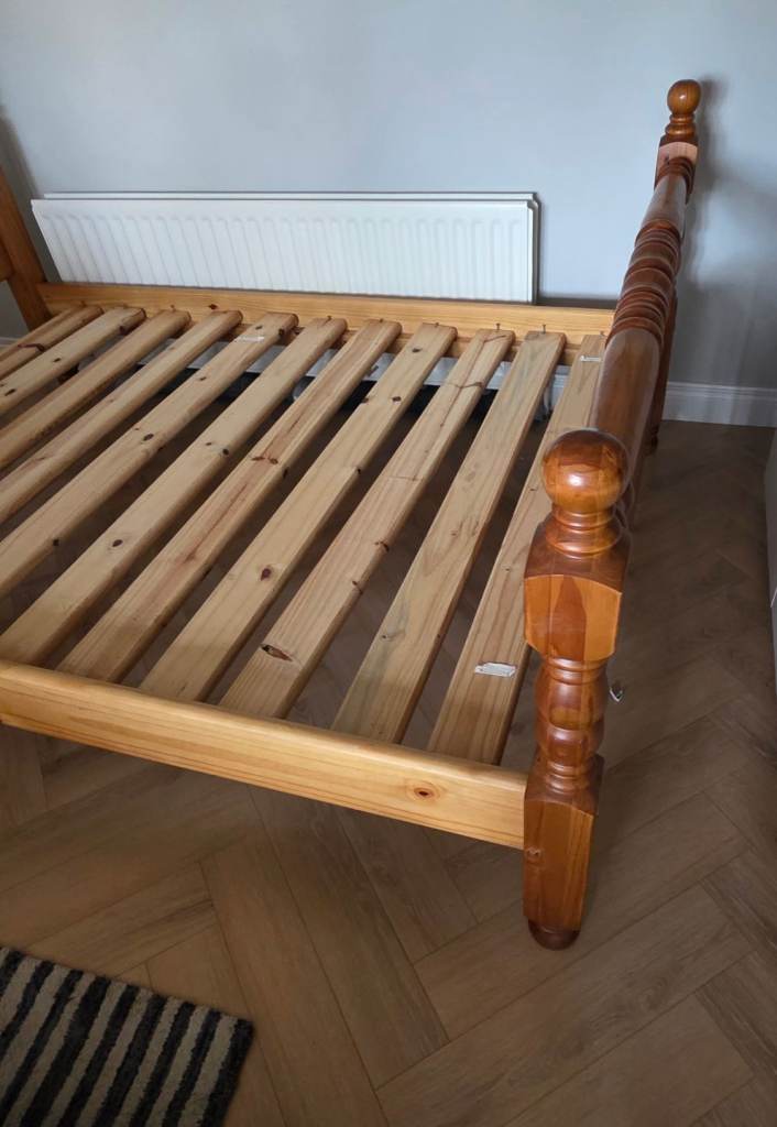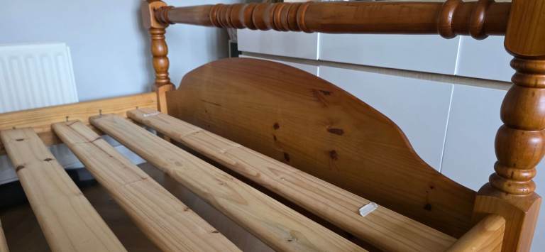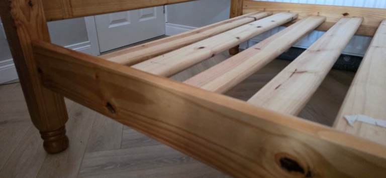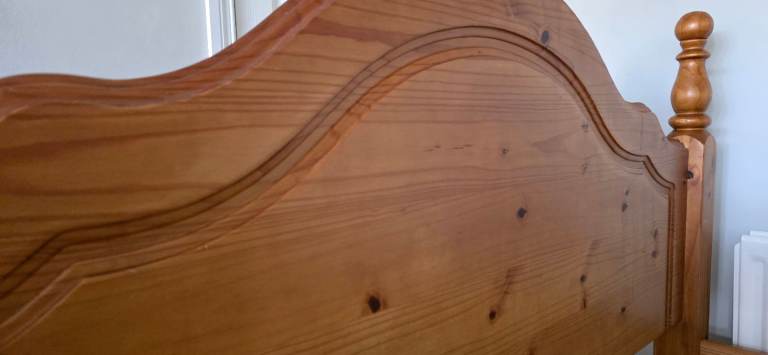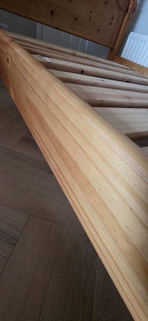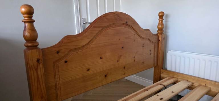 Lovely solid pine wood bed frame, fits a standard double mattress. Cost £550 new. Bargain.