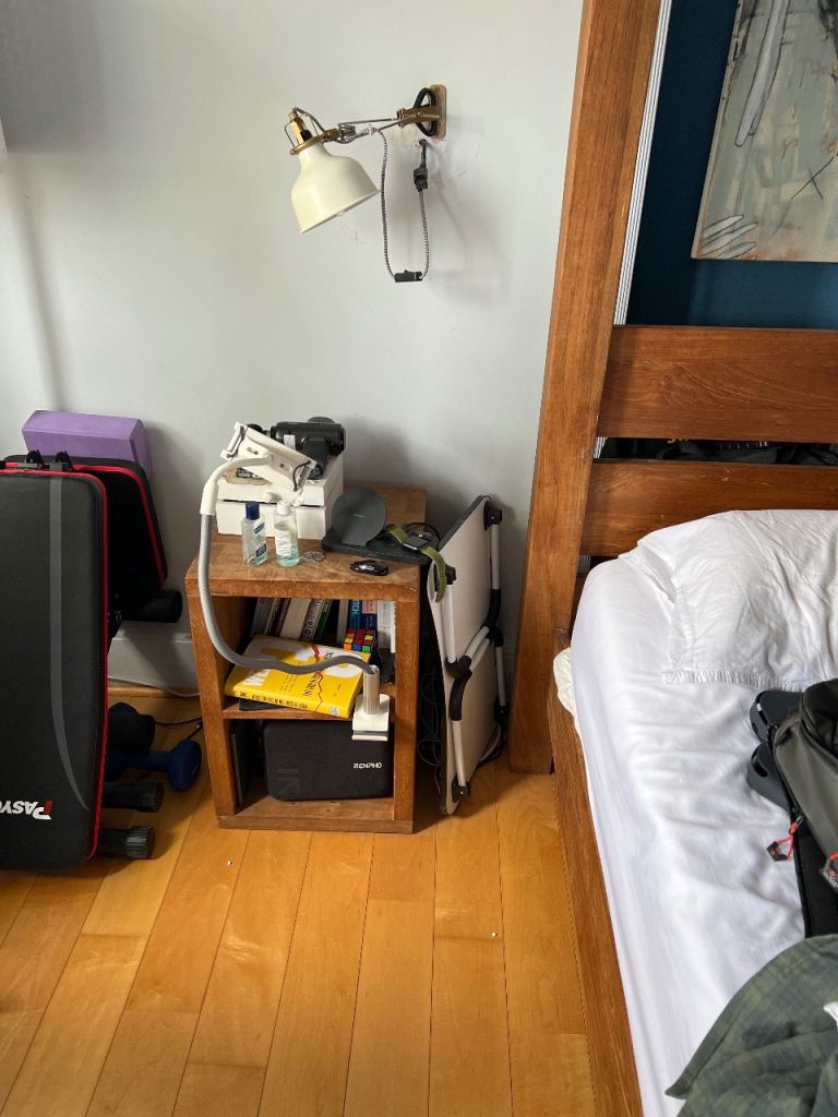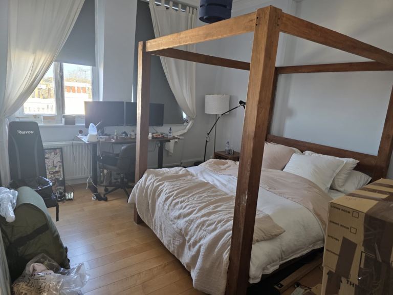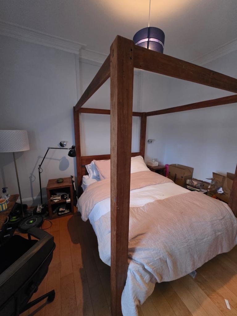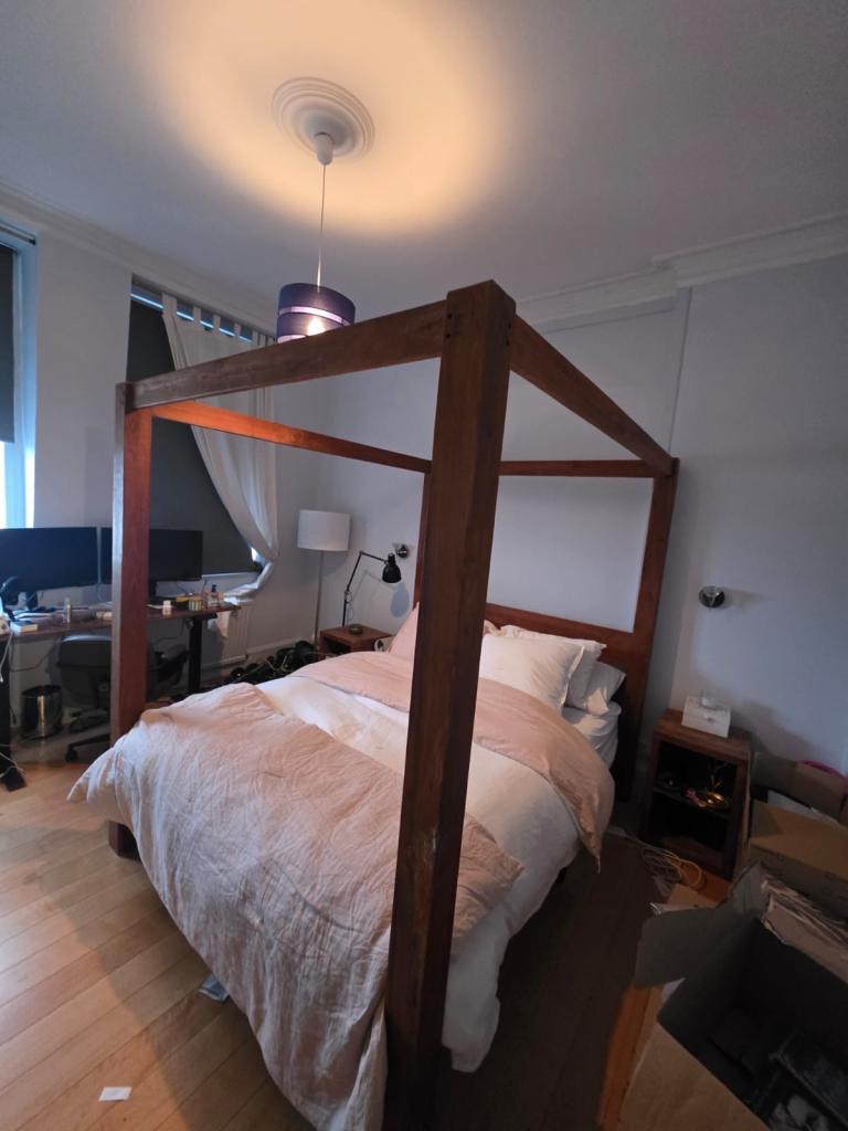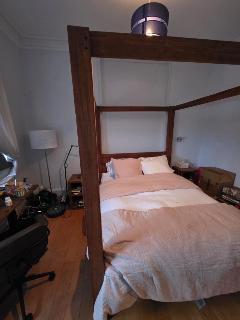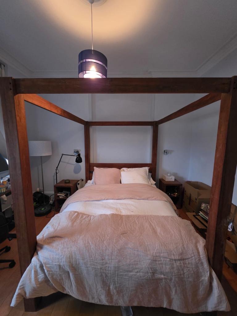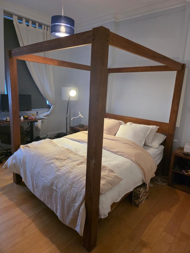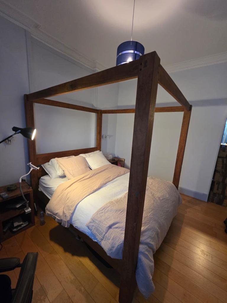 Posting for under a monthTeak Canopy King Bed Frame plus foam mattress and 2 Bed side tables