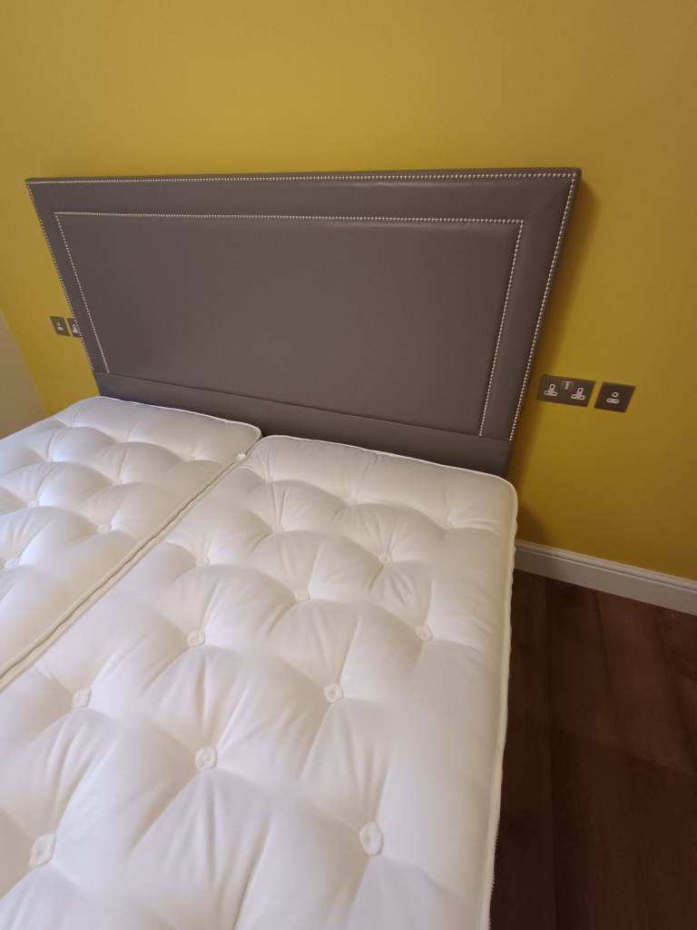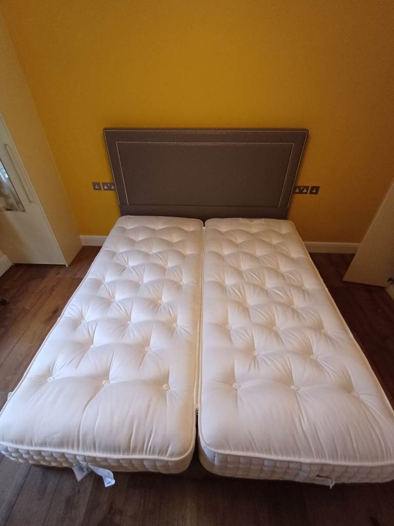 VGC - Big Bed Company – Longer Super king bed base, headboard and 2 single longer mattresses – 1 x firm, 1 x medium, zip-linked to create super king mattress. Selling all together.