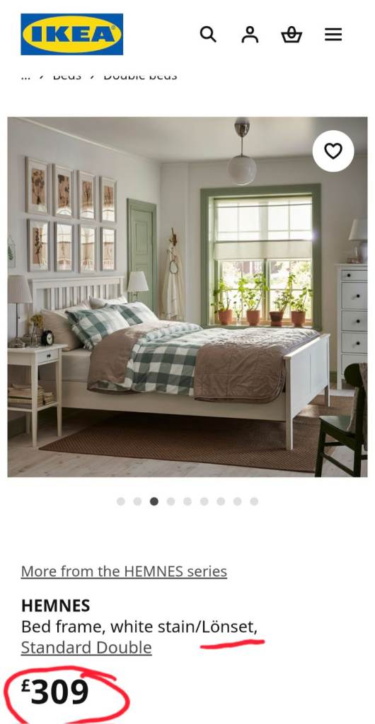 Ikea Hemnes Standard Double bed in good condition, everything is working properly. Wooden bed.