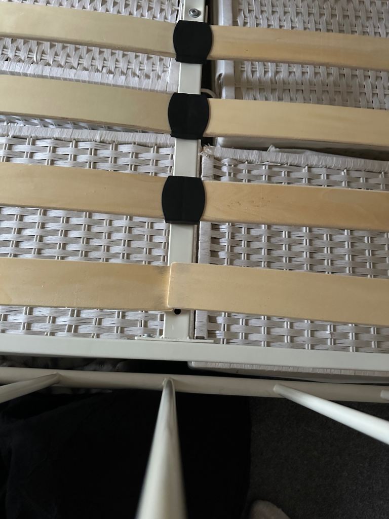 Used but in good condition, missing a plastic part to join one of the slats but doesn’t affect it. Selling as upgrading to a bigger bed. Already dismantled ready for collection. Cash only