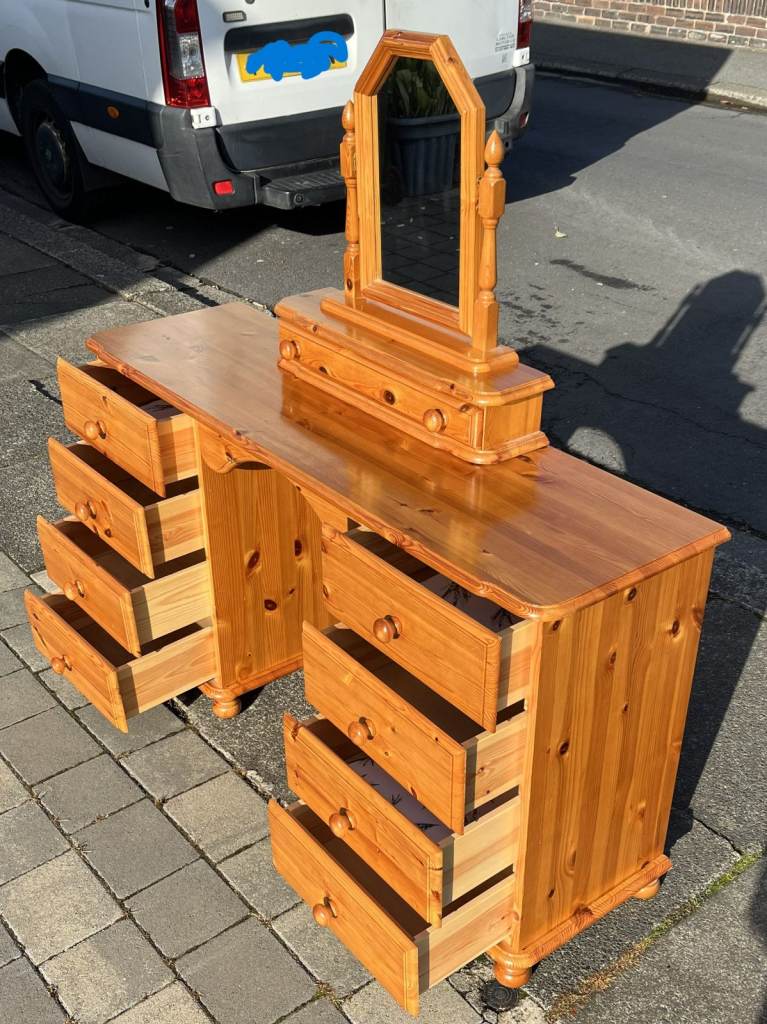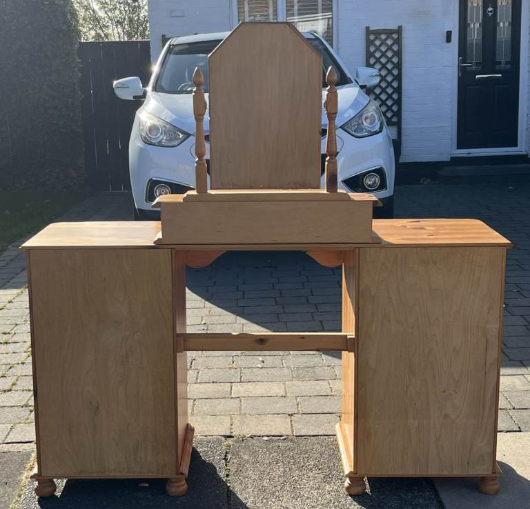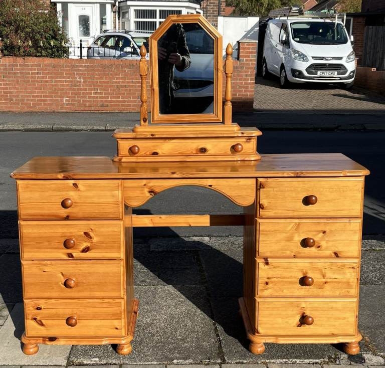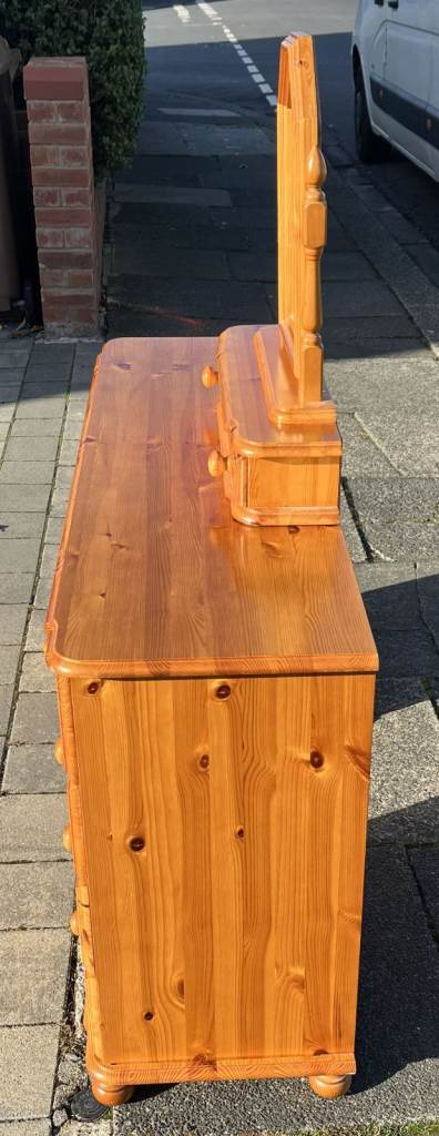 A QUALITY SOLID PINE DRESSING TABLE & MIRROR