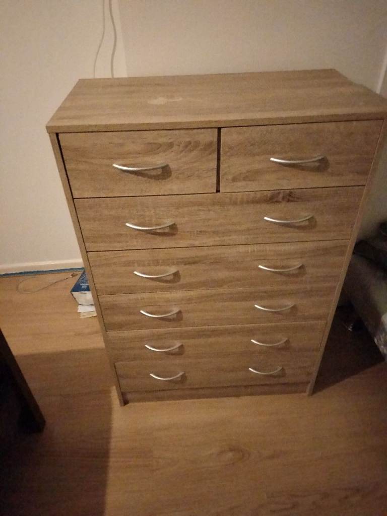 Featuring a classic five-drawer layout, elegant tapered legs, and attractive decorative brass knobs, this piece has real charm and character. The carved gallery trim to the rear adds an extra touch of period detail and enhances its antique appeal.