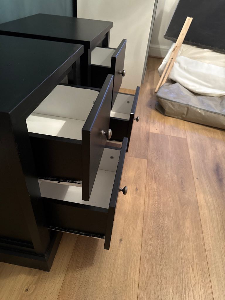 Black painted bedside units. Quite solid.