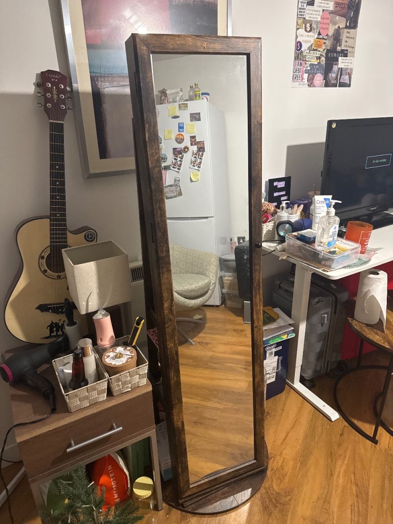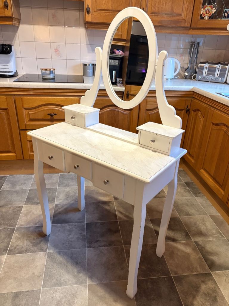 Used 2 months, not fit for the space in room. Scratchless, good, sturdy with small seaty