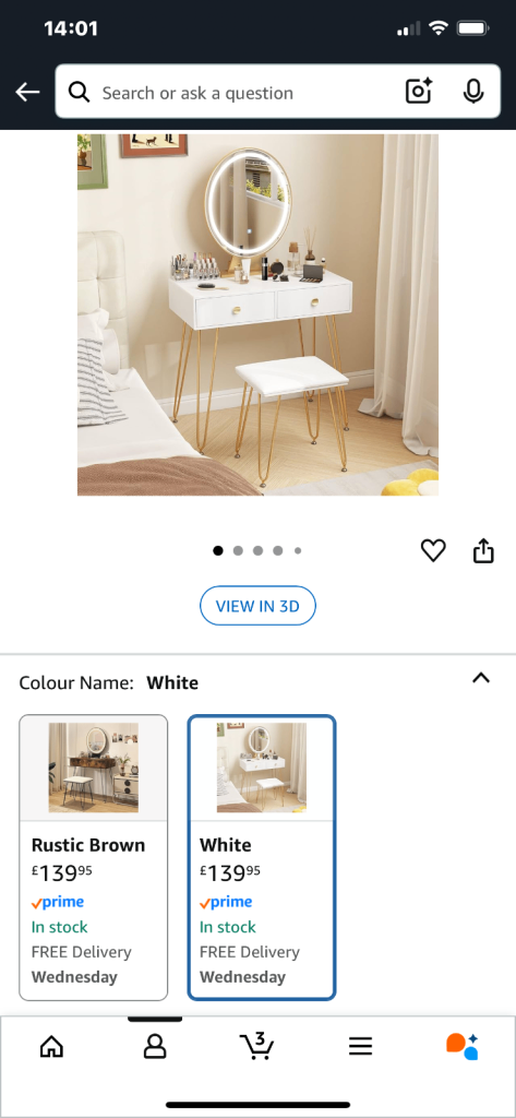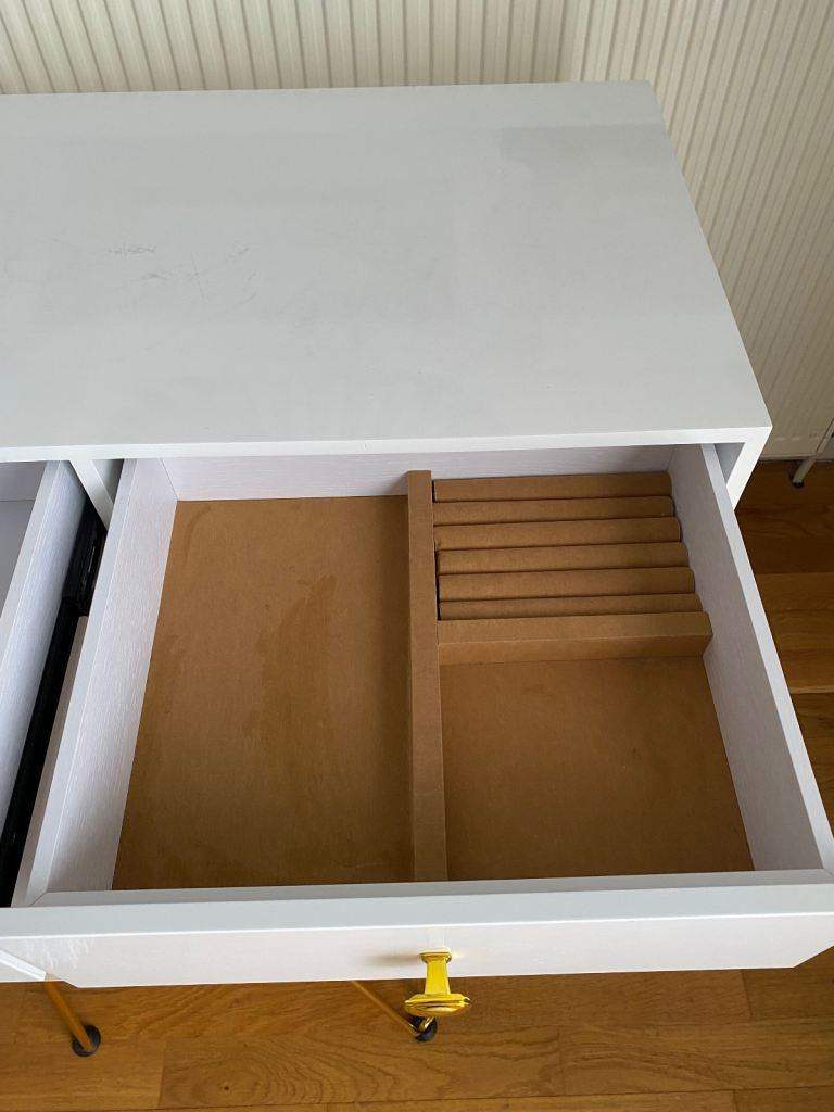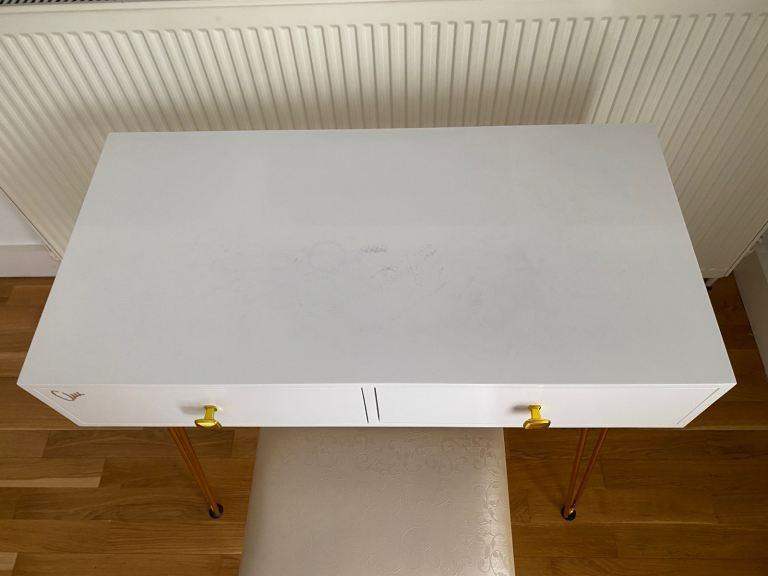 Comes with 2 large drawers, this vanity table provides enough storage space for cosmetics, accessories and other items.