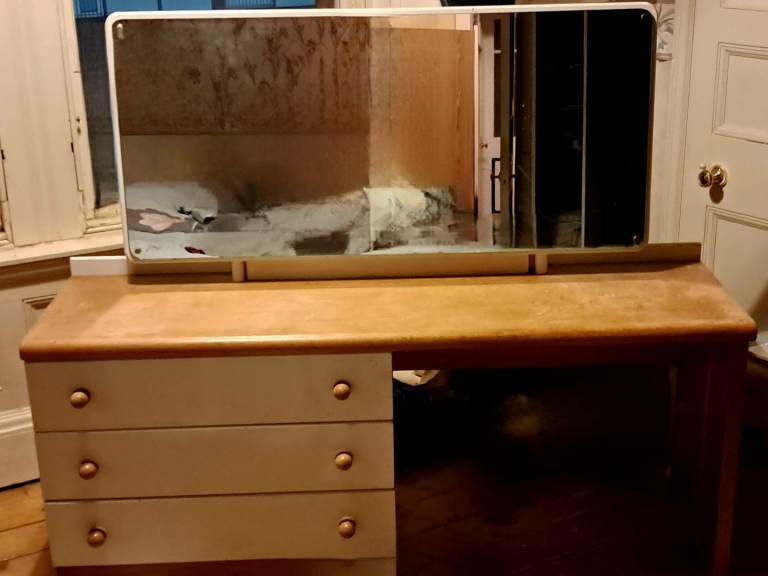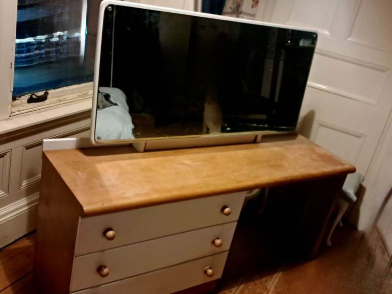 White and teak dressing table with large mirror 3 drawers.
