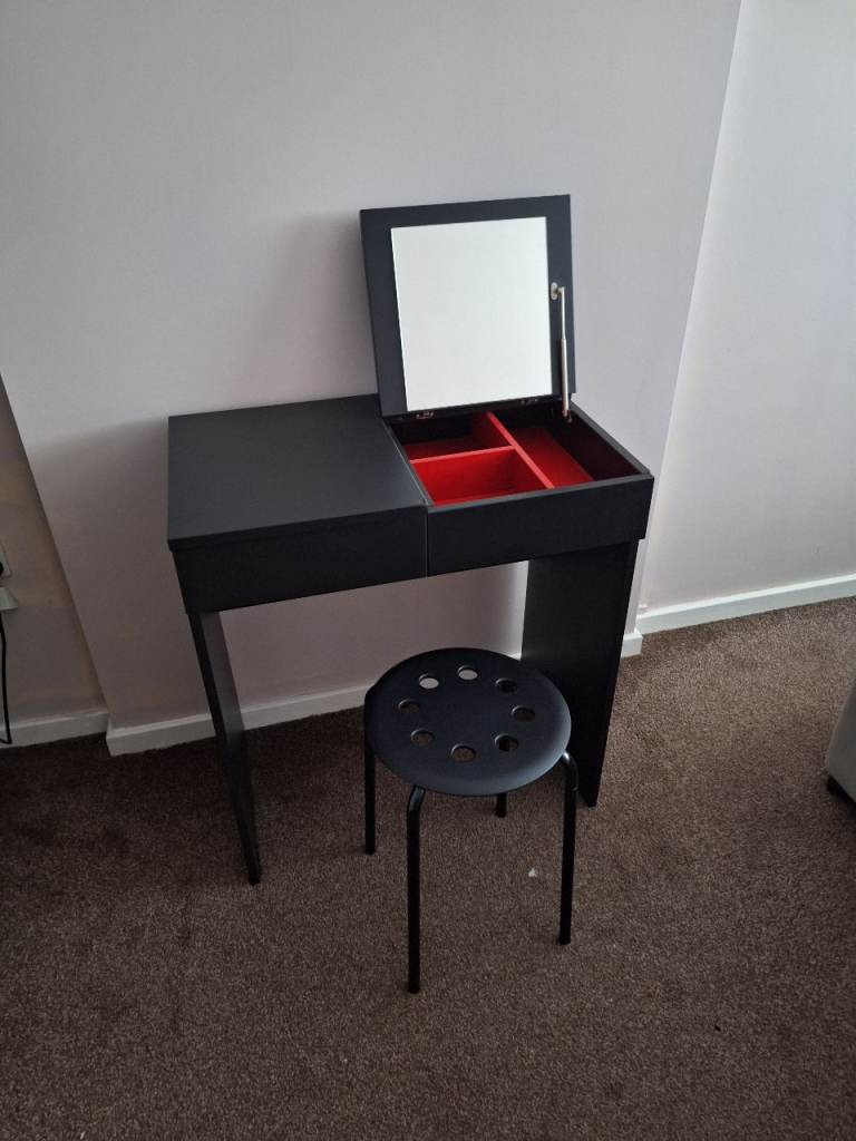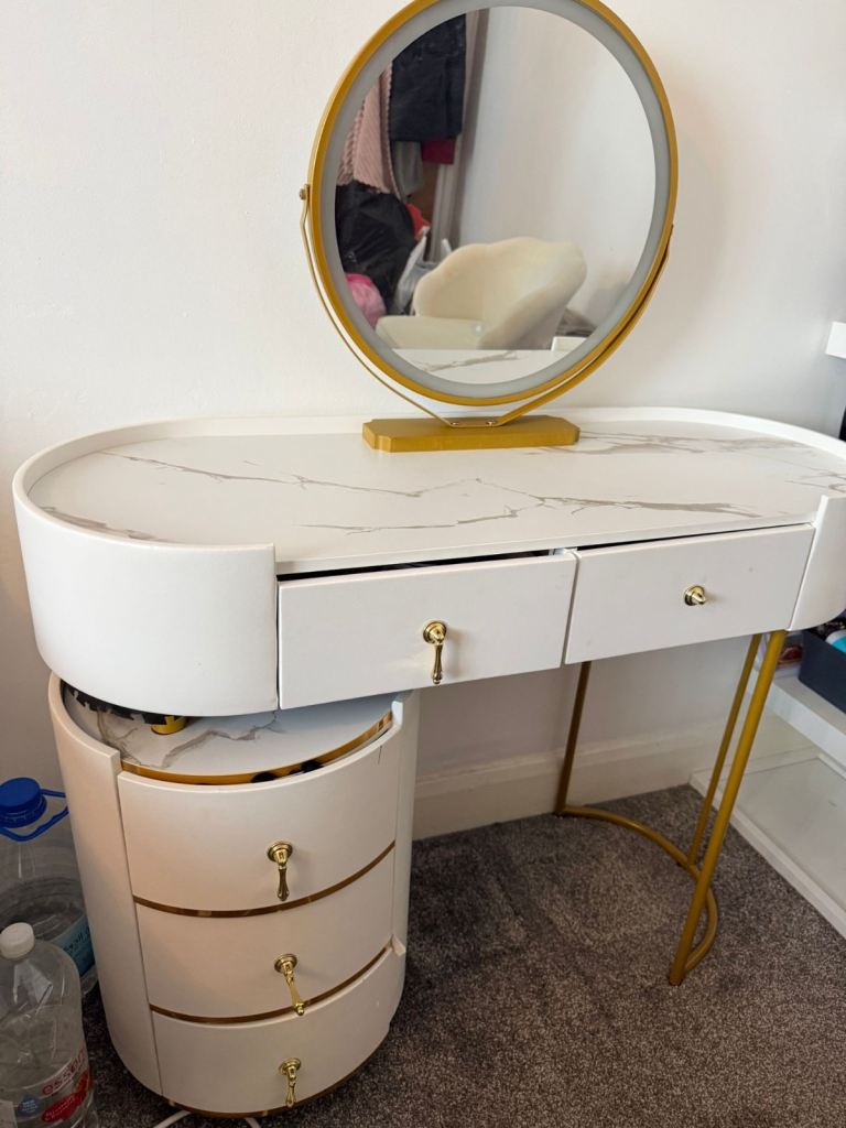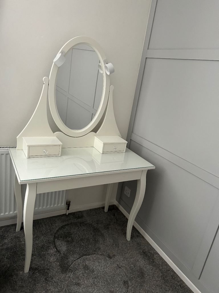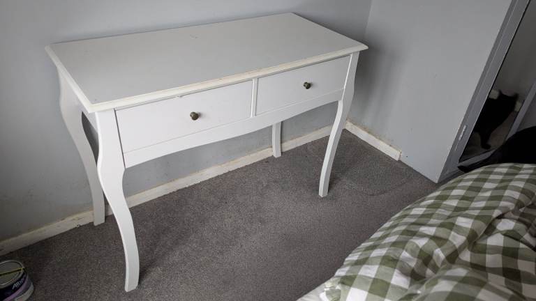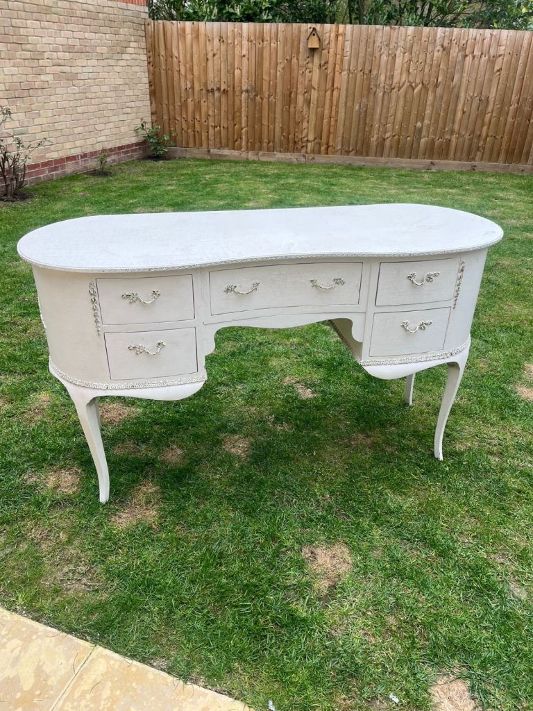 Cream painted pine well-made Dressing Table with 6 Drawers, matching Mirror and Stool.