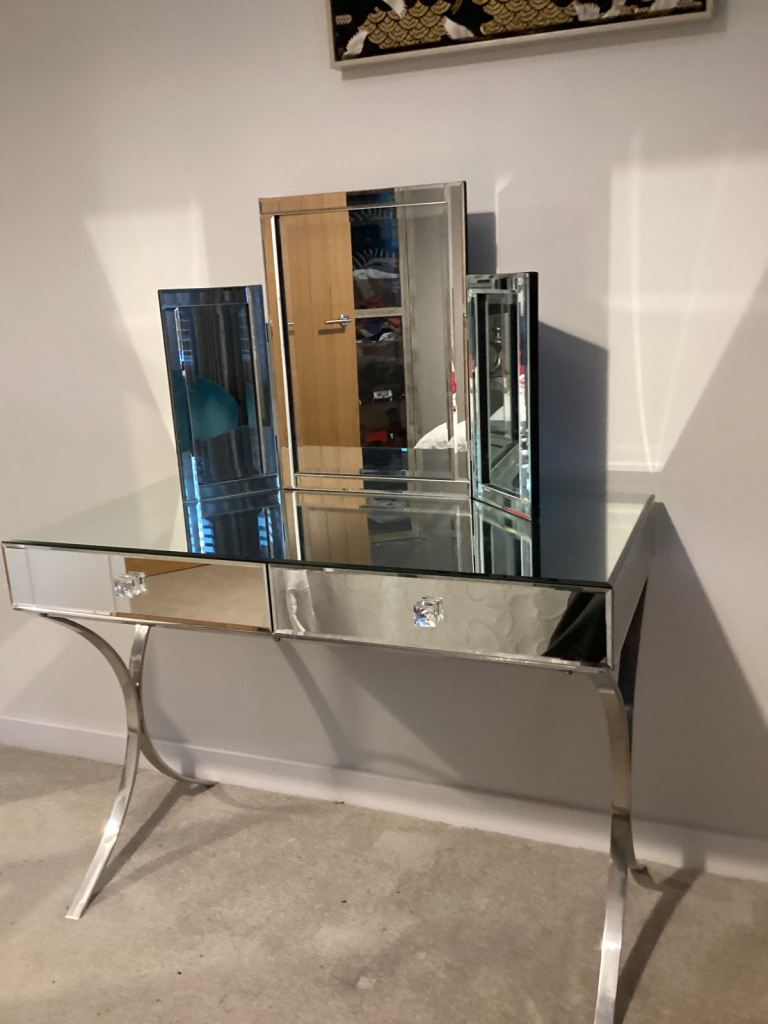 Elegant Dressing Table or Console table .Mirrored glass and tri fold mirror