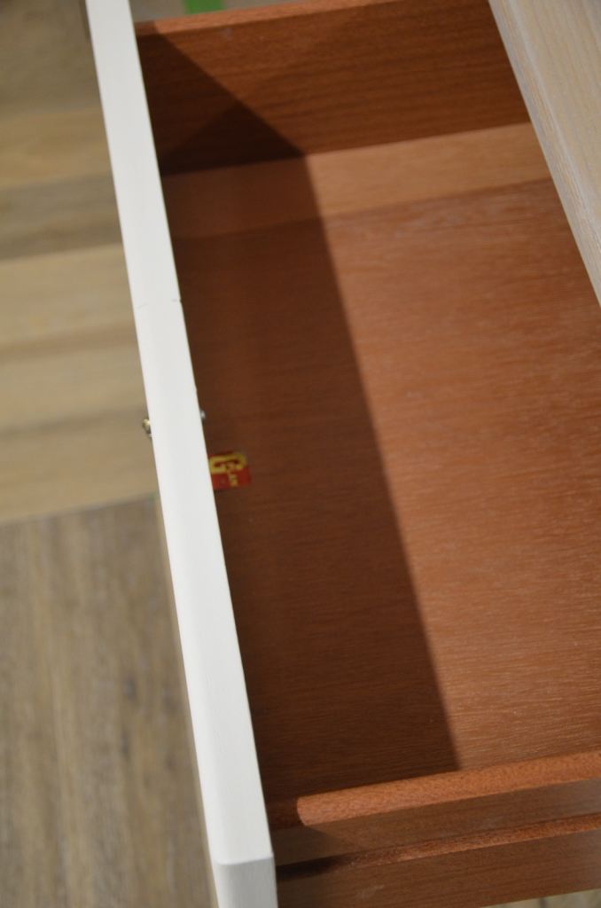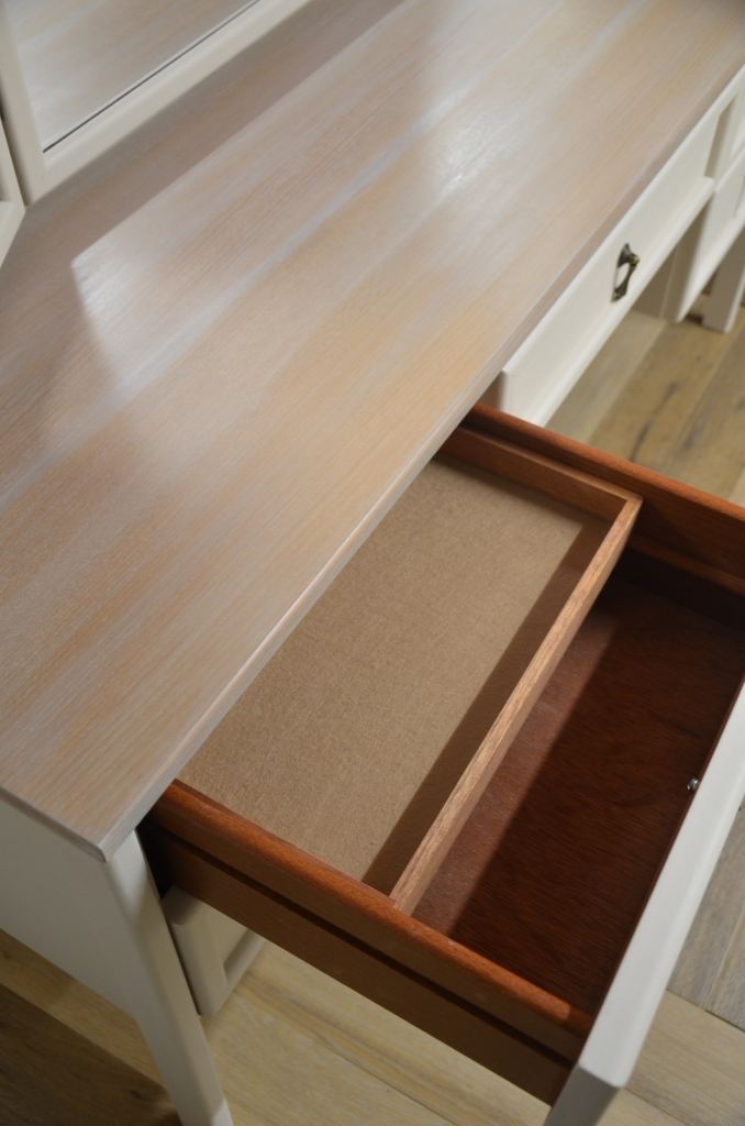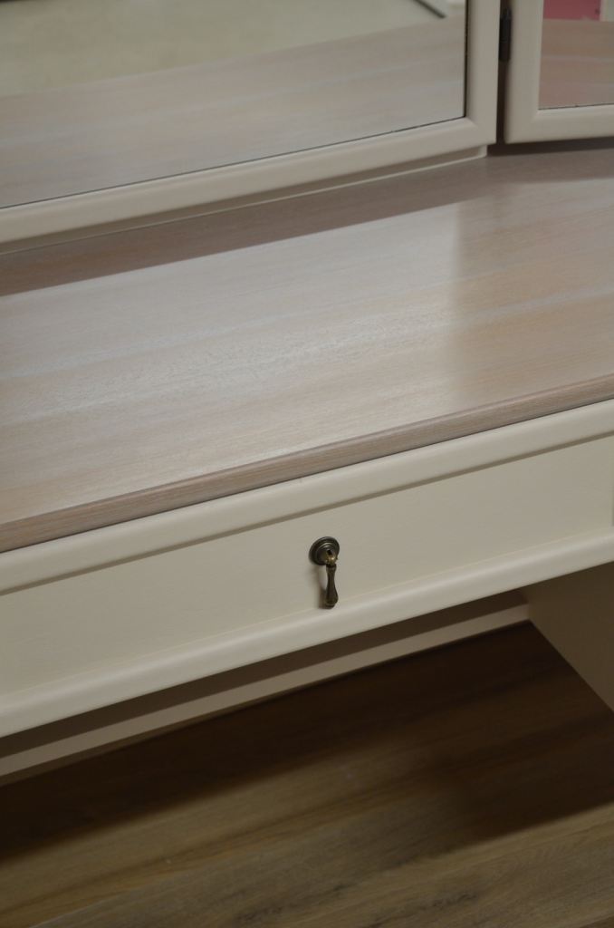 Painted in an off white. The top has been grey then white washed and clear waxed for protection. Droplet handles added however these can be changed upon request.
