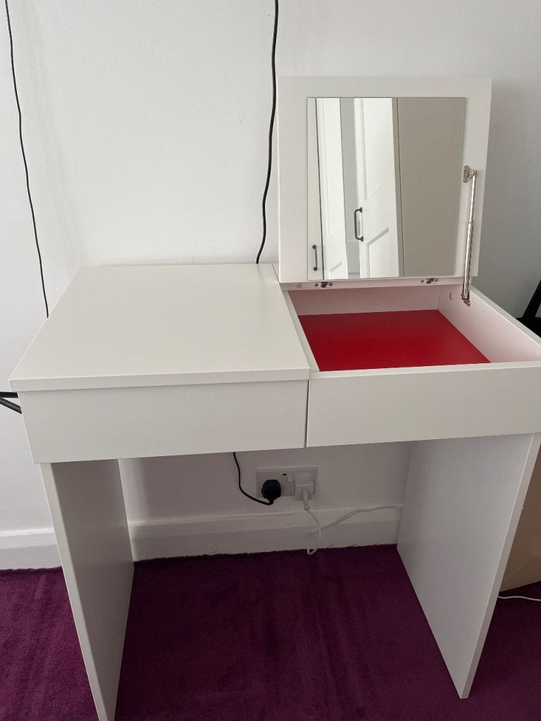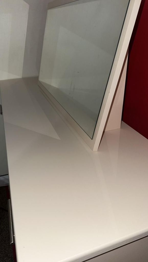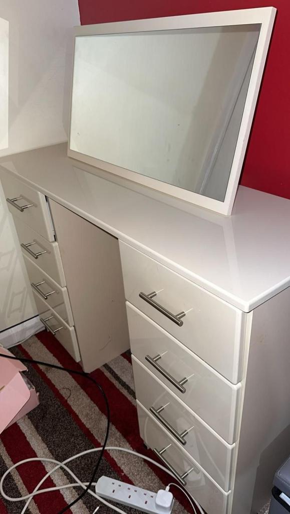 High gloss cream dressing table brand new not in use also comes with mirror . Bargain for its condition