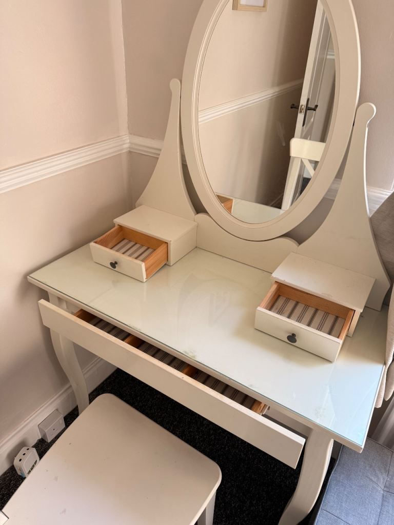 Posting for under a monthIkea Dressing Table with Mirror and Chair