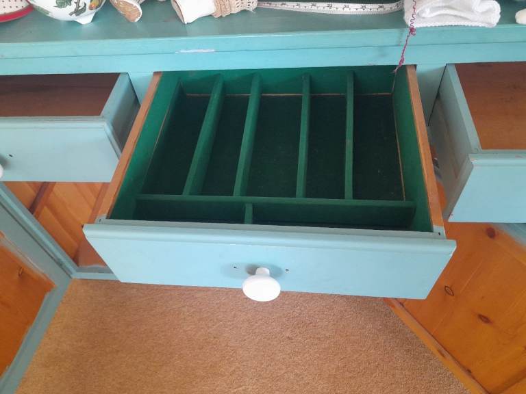Versatile kitchen dresser with built in cutlery tray.