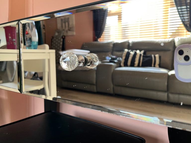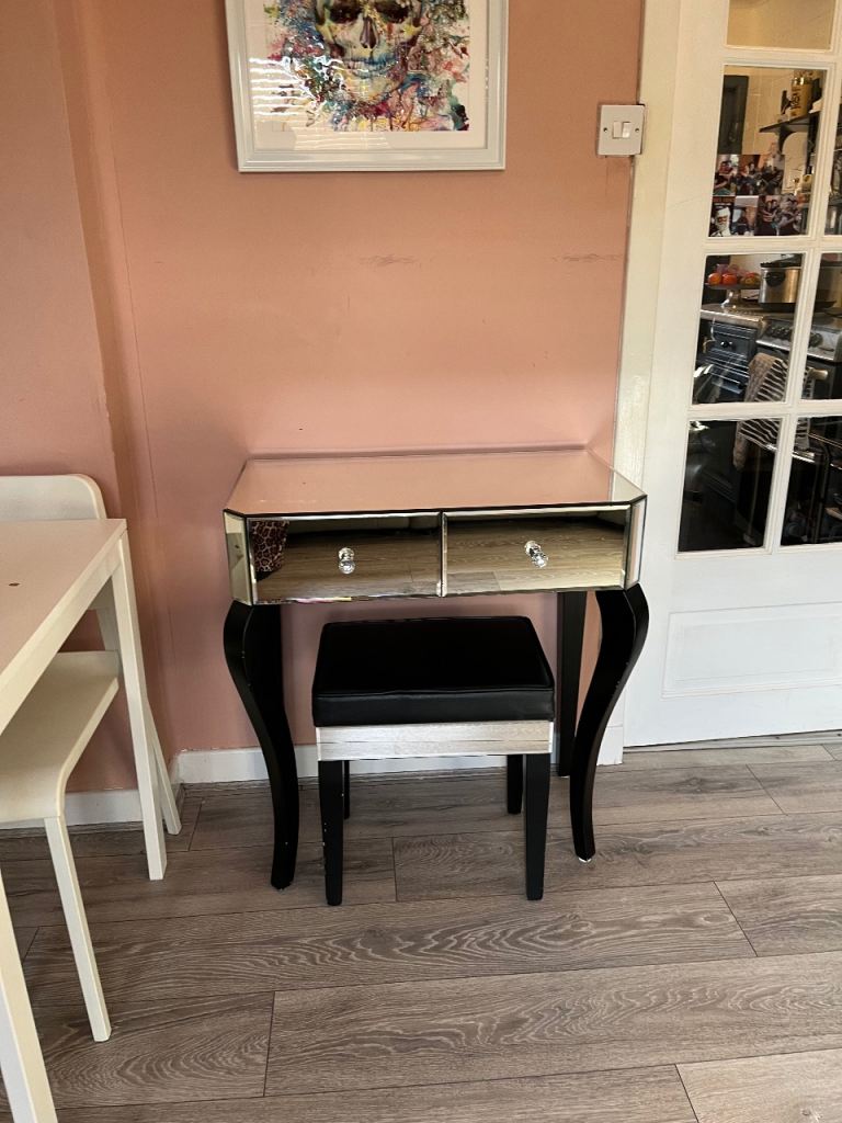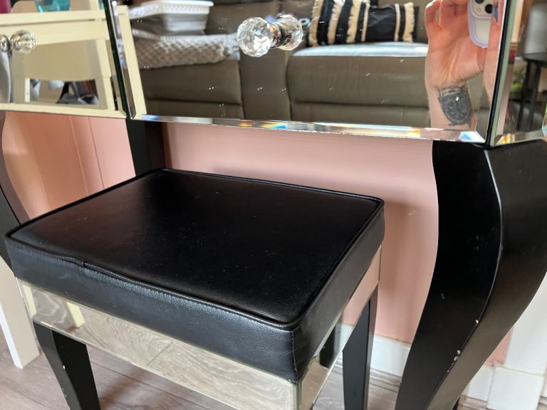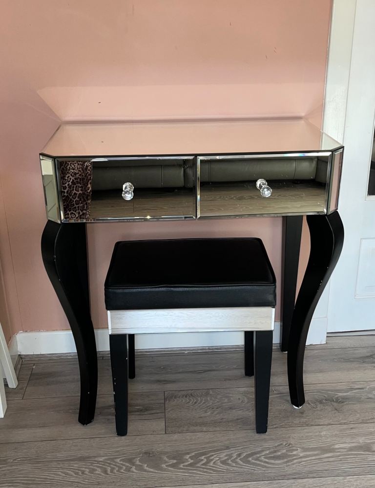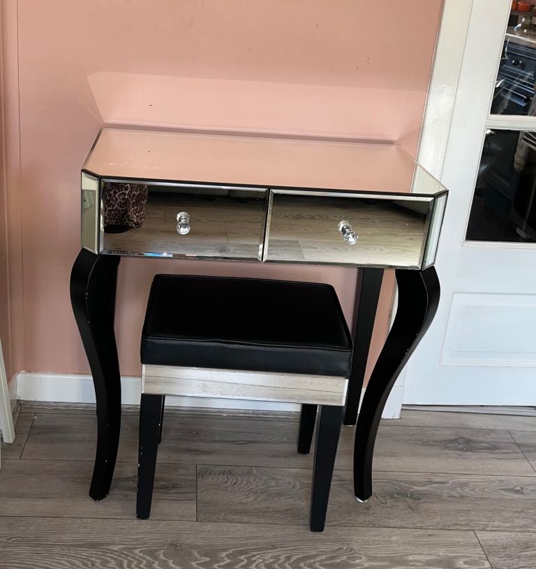 Well loved mirrored dressing table. There are signs of wear and tear as shown and spots of eyelash glue that my teen has spilled.